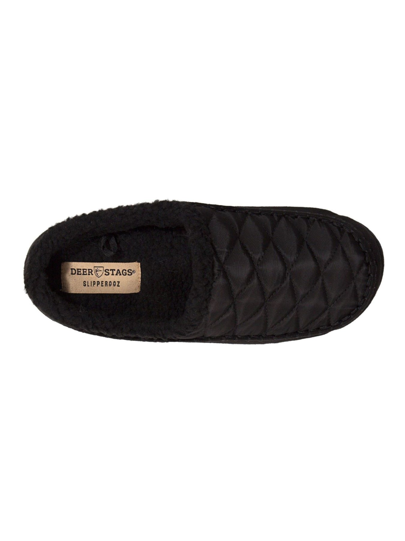 DEER STAGS Mens Black Quilted Comfort Slipperooz Round Toe Slip On Slippers Shoes M