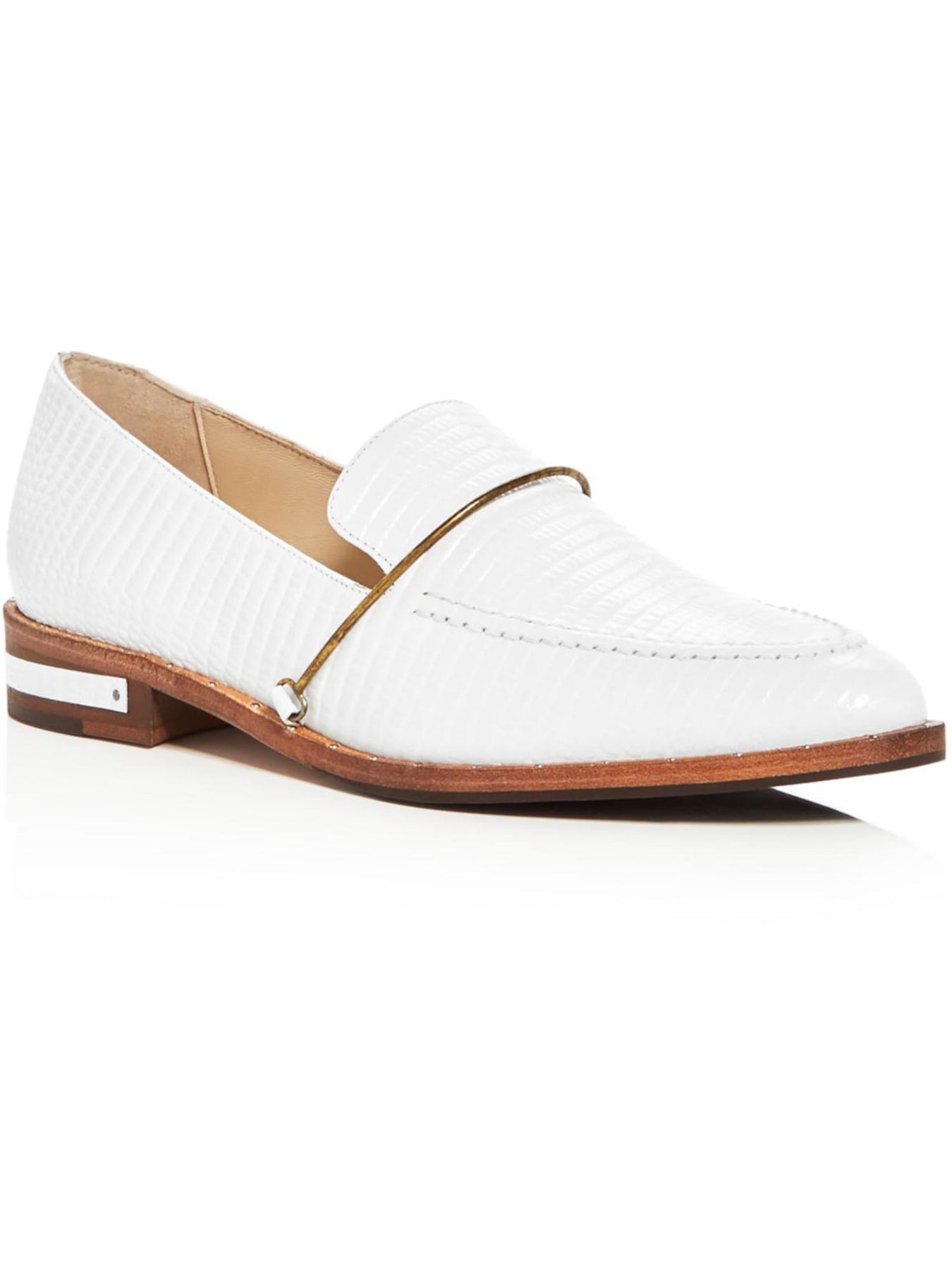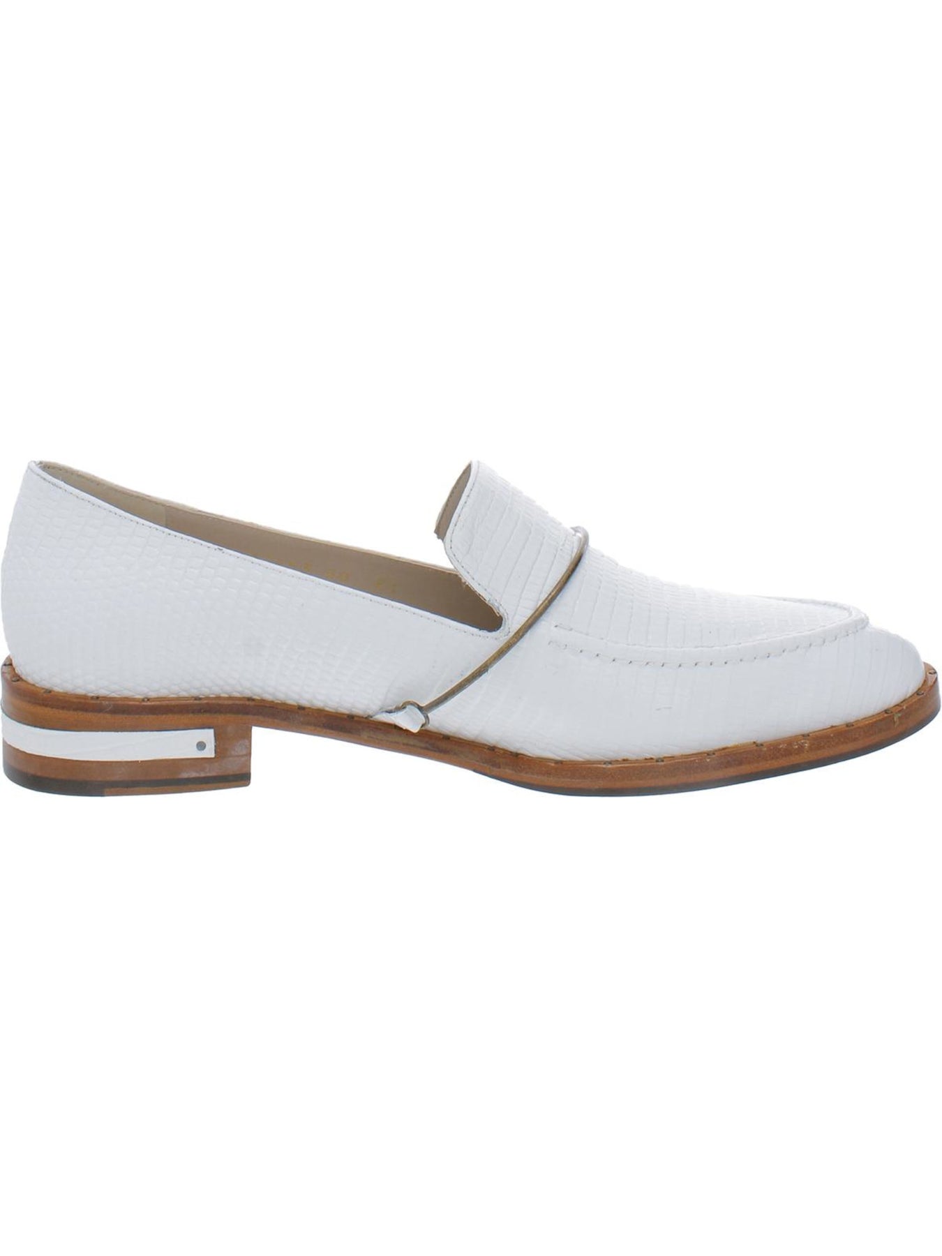 FREDA SALVADOR Womens White Croc Comfort Embellished Light Almond Toe Block Heel Slip On Leather Loafers Shoes 9.5