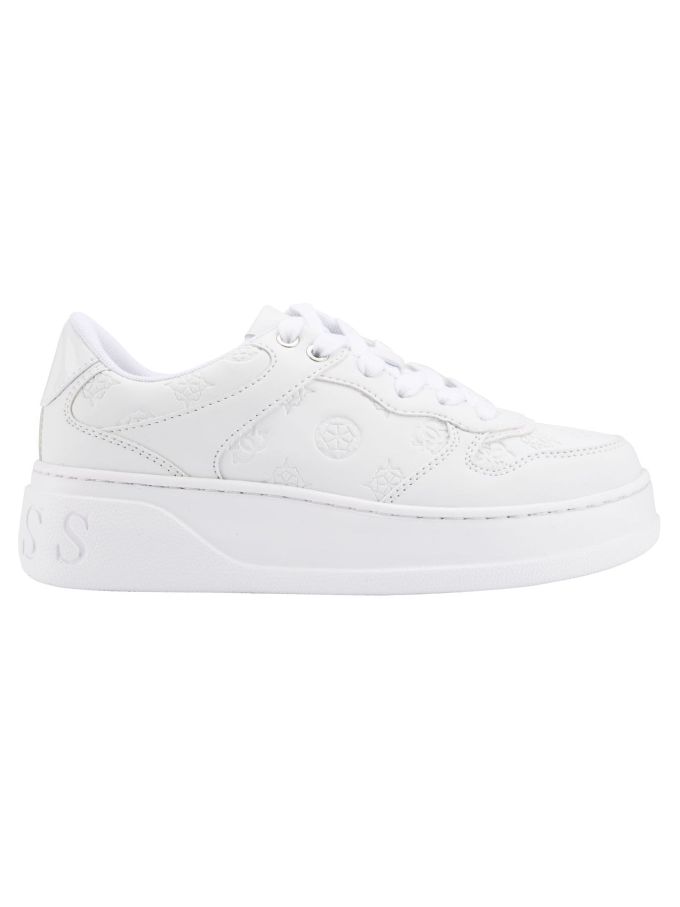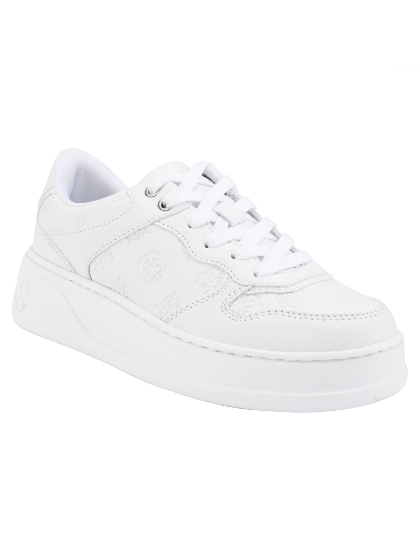 GUESS Womens White 1" Platform Debossed Accents Padded Cleva Round Toe Platform Lace-Up Sneakers Shoes 11 M