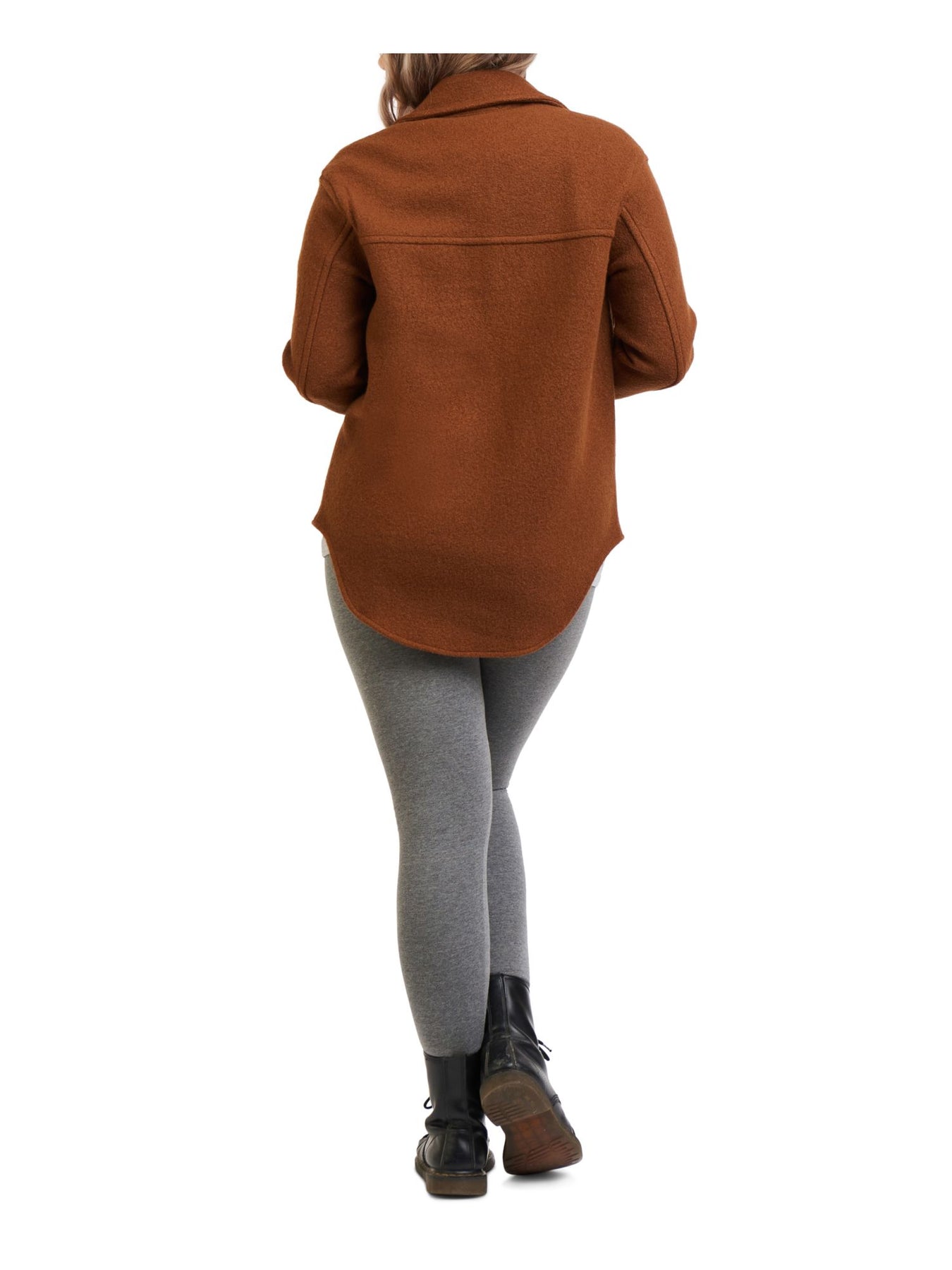 BLACK TAPE Womens Brown Pocketed Textured Cuffed Sleeve Collared Button Up Top Plus X