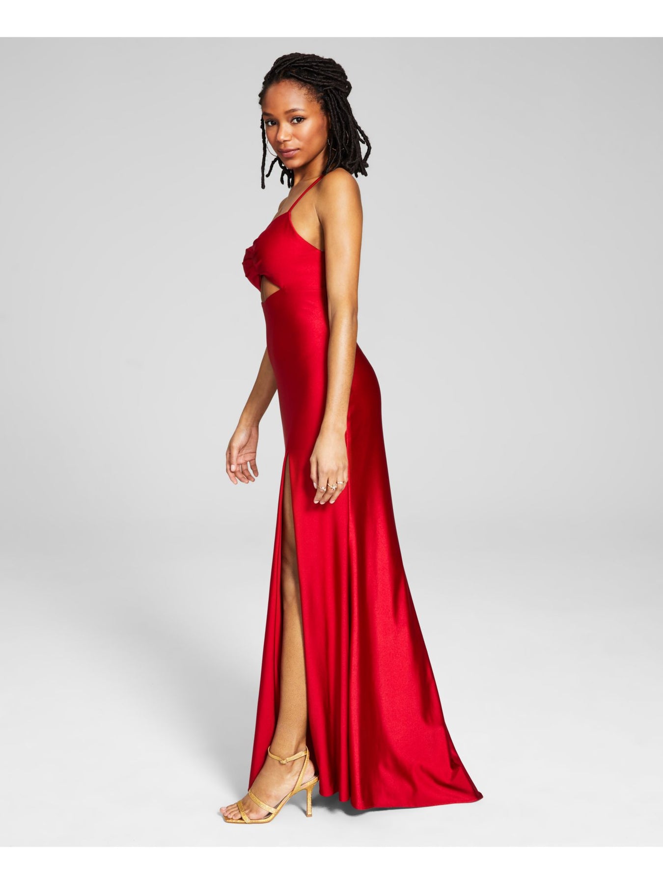 BLONDIE NITES Womens Red Stretch Cut Out Zippered Hook Back Closure Padded Cups Spaghetti Strap Sweetheart Neckline Full-Length Prom Gown Dress 3