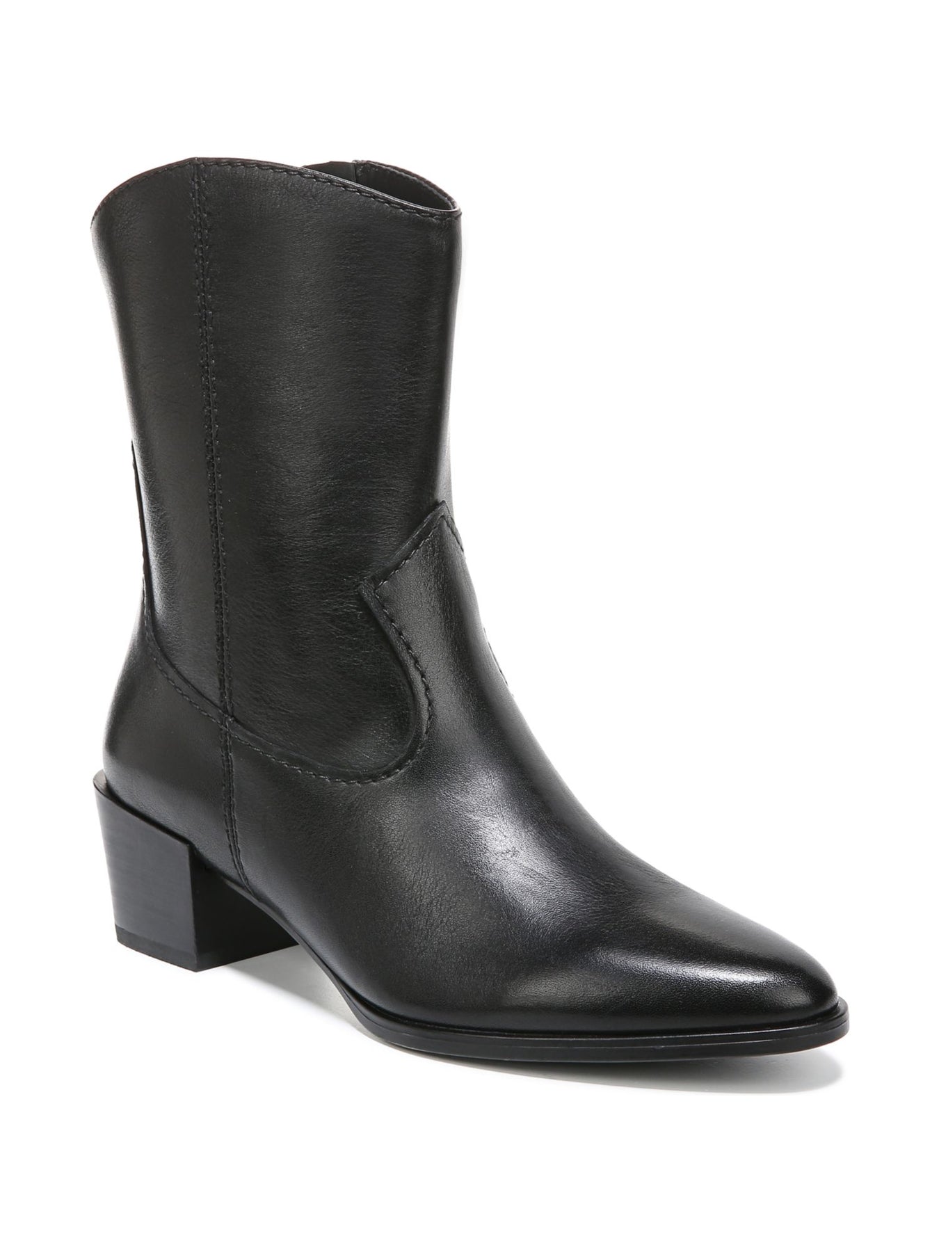 NATURALIZER Womens Black Padded Gaby Almond Toe Block Heel Zip-Up Leather Western Boot M