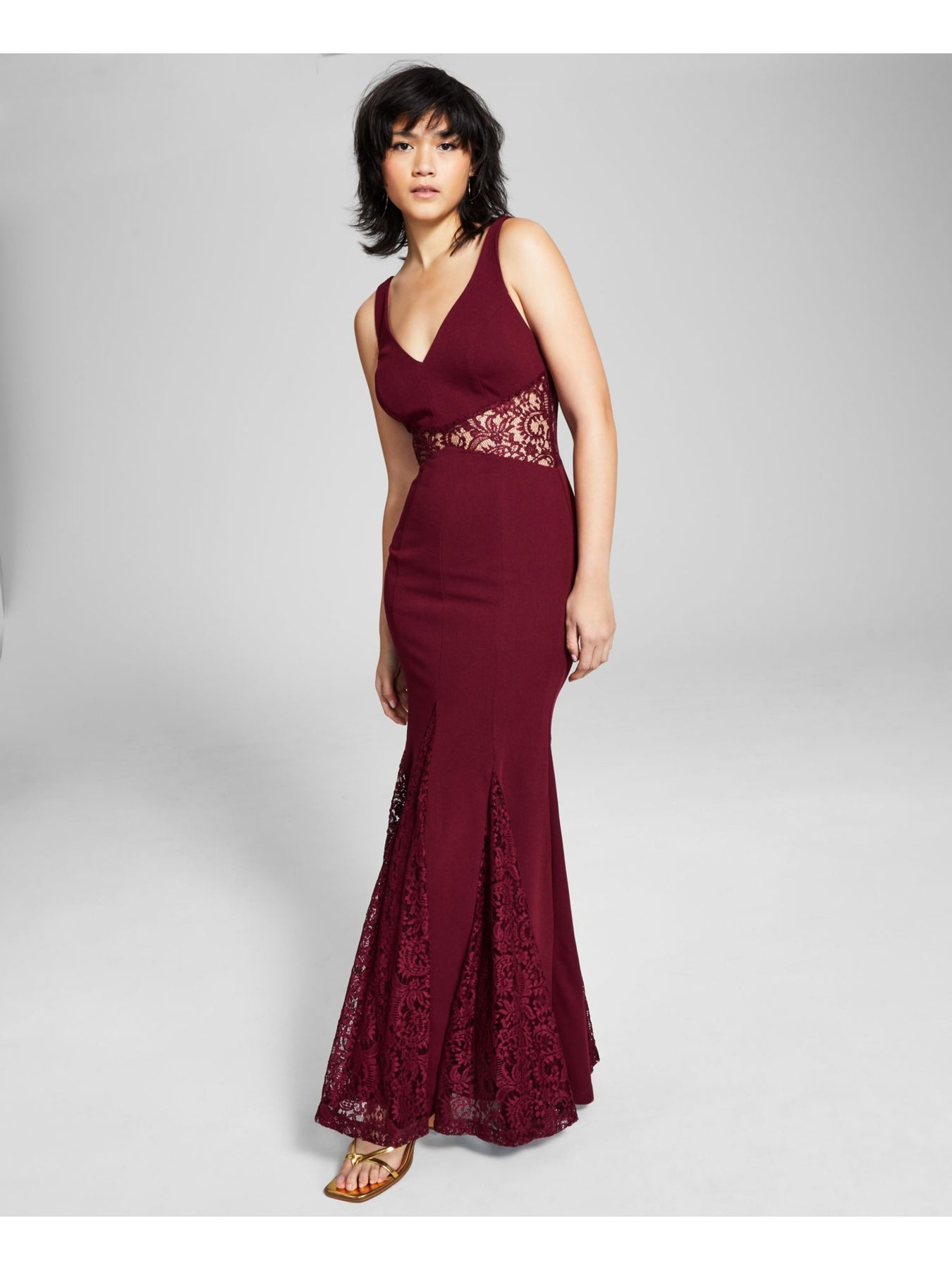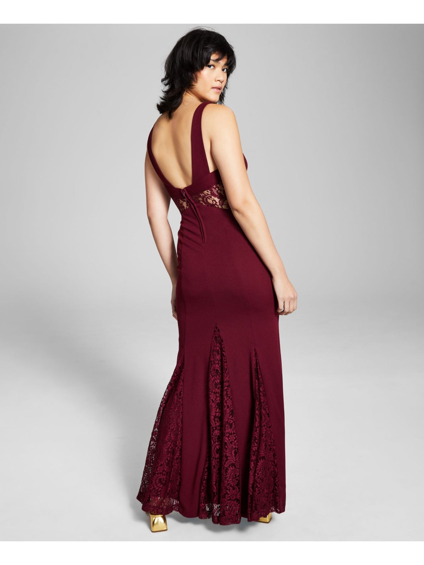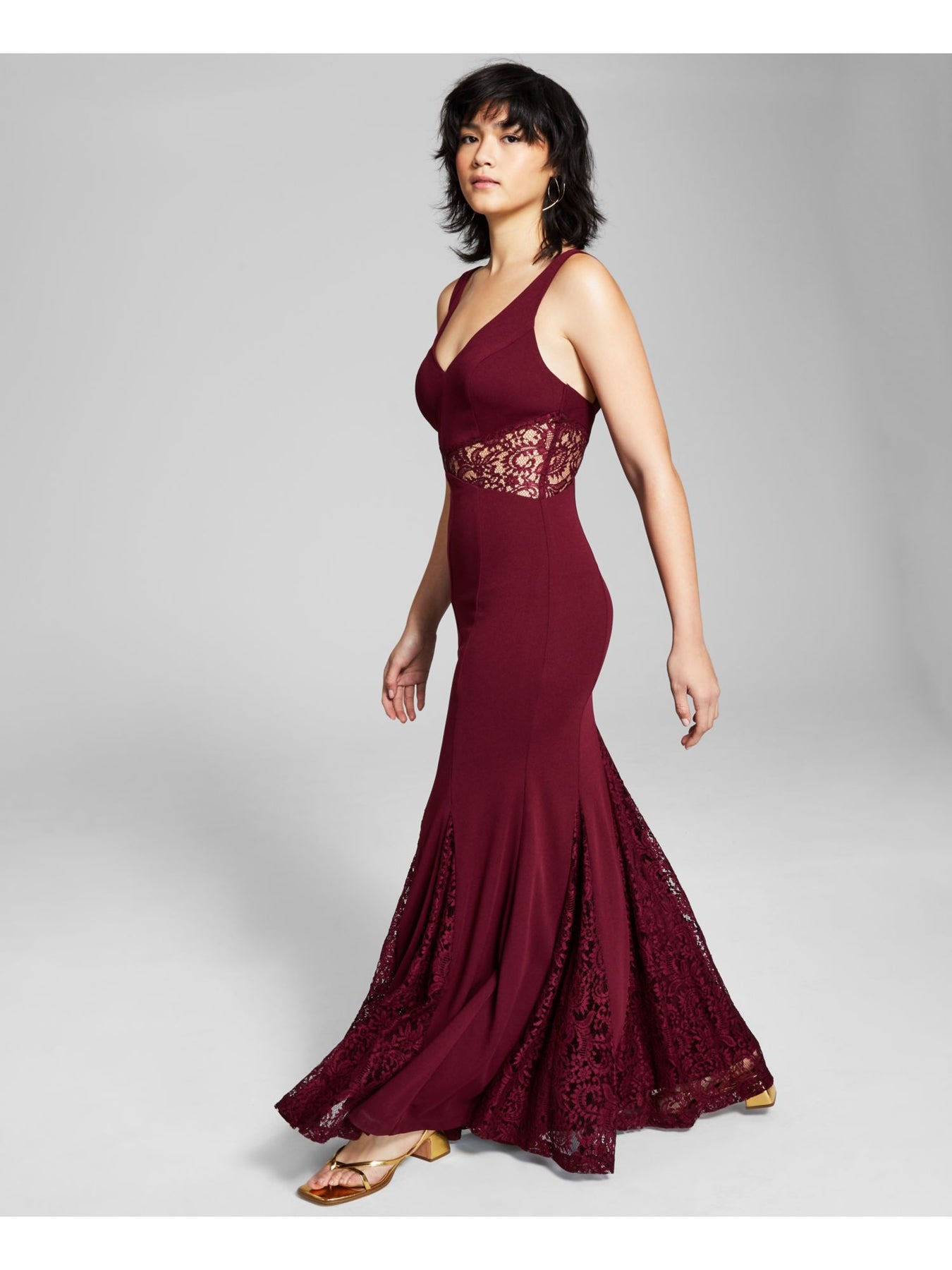 TRIXXI Womens Maroon Lace Zippered Partially Lined Godet Sleeveless V Neck Maxi Gown Prom Dress 3