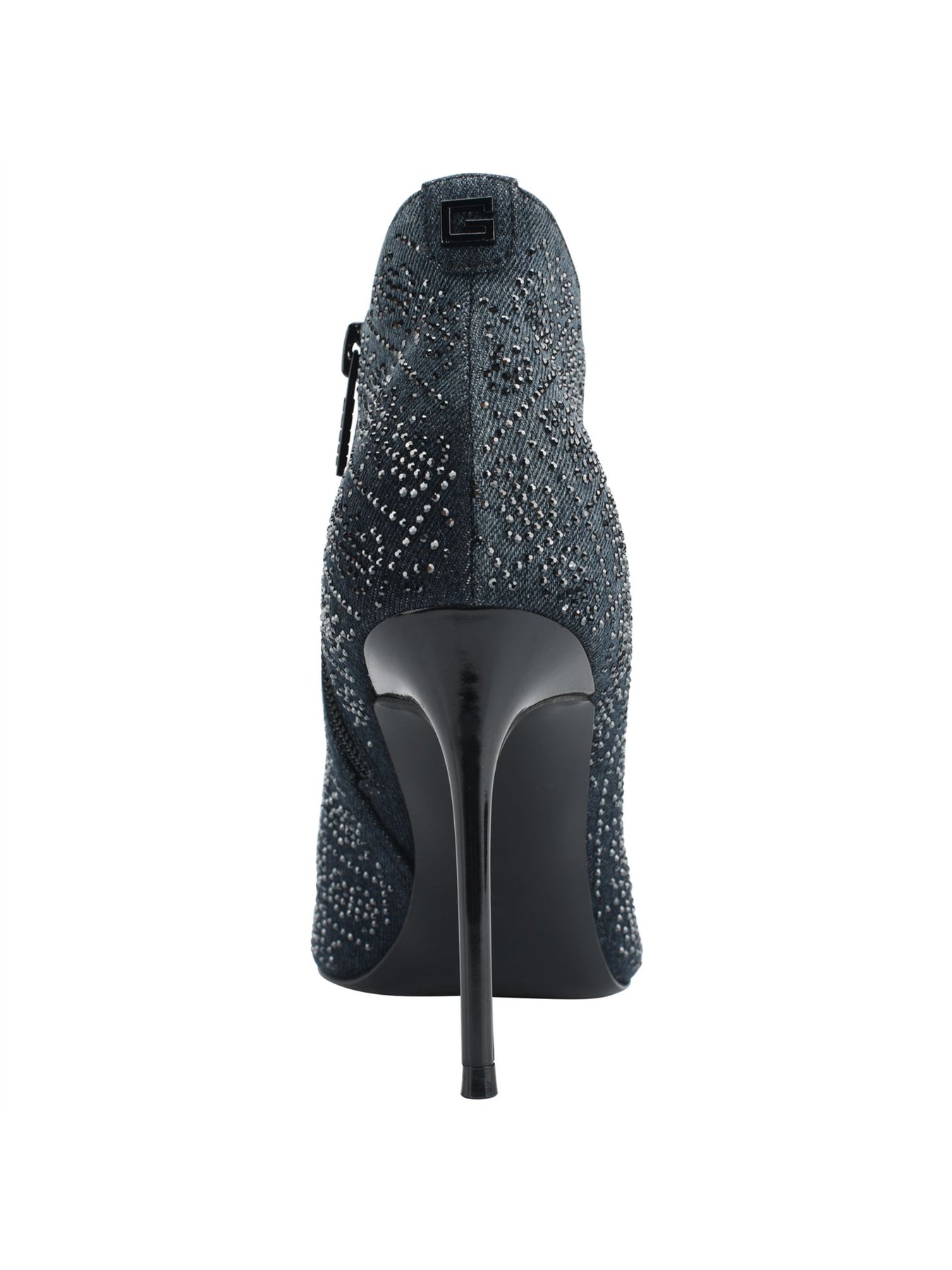 Womens Navy Embellished Comfort Fazzie Pointed Toe Stiletto Zip-Up Dress Booties M
