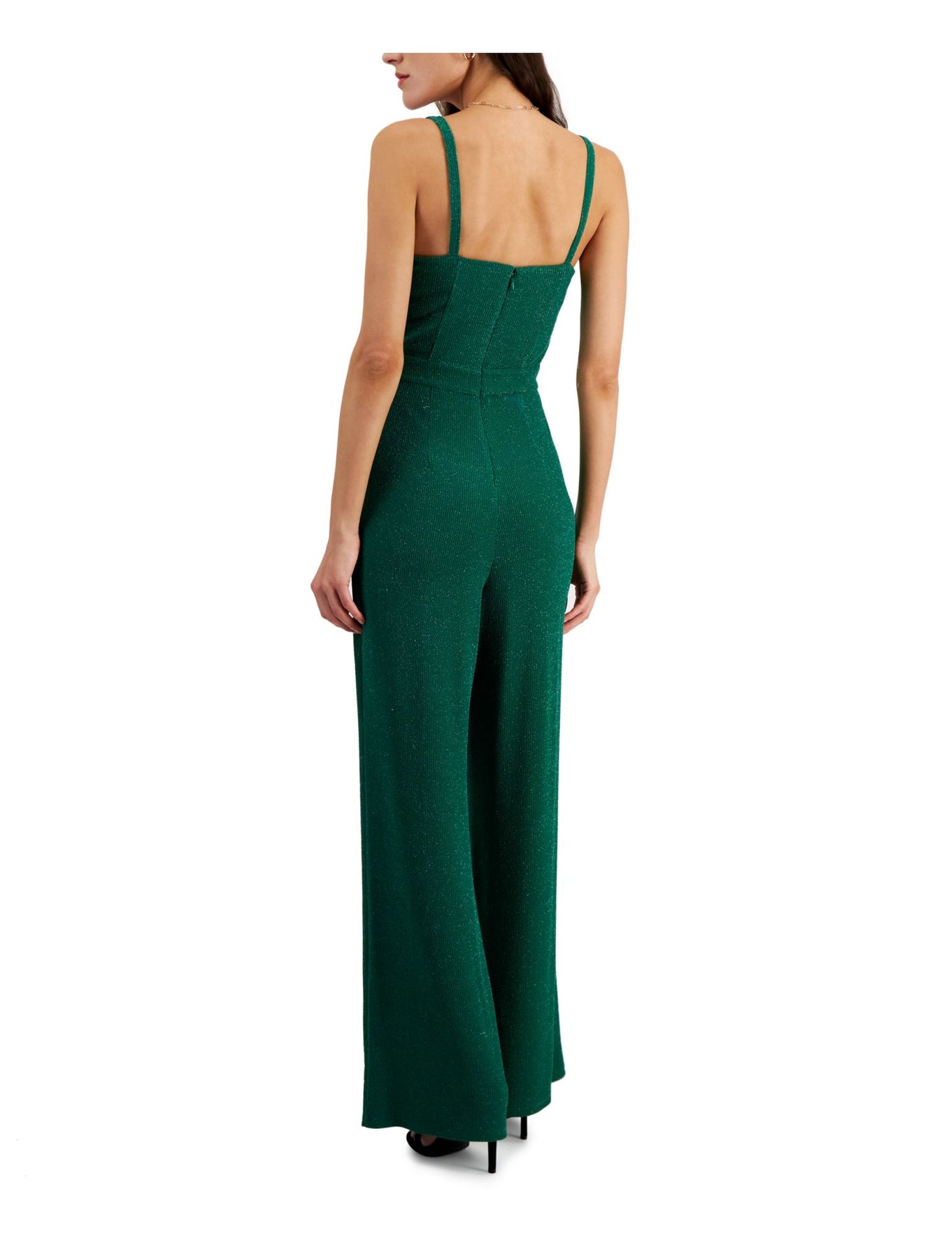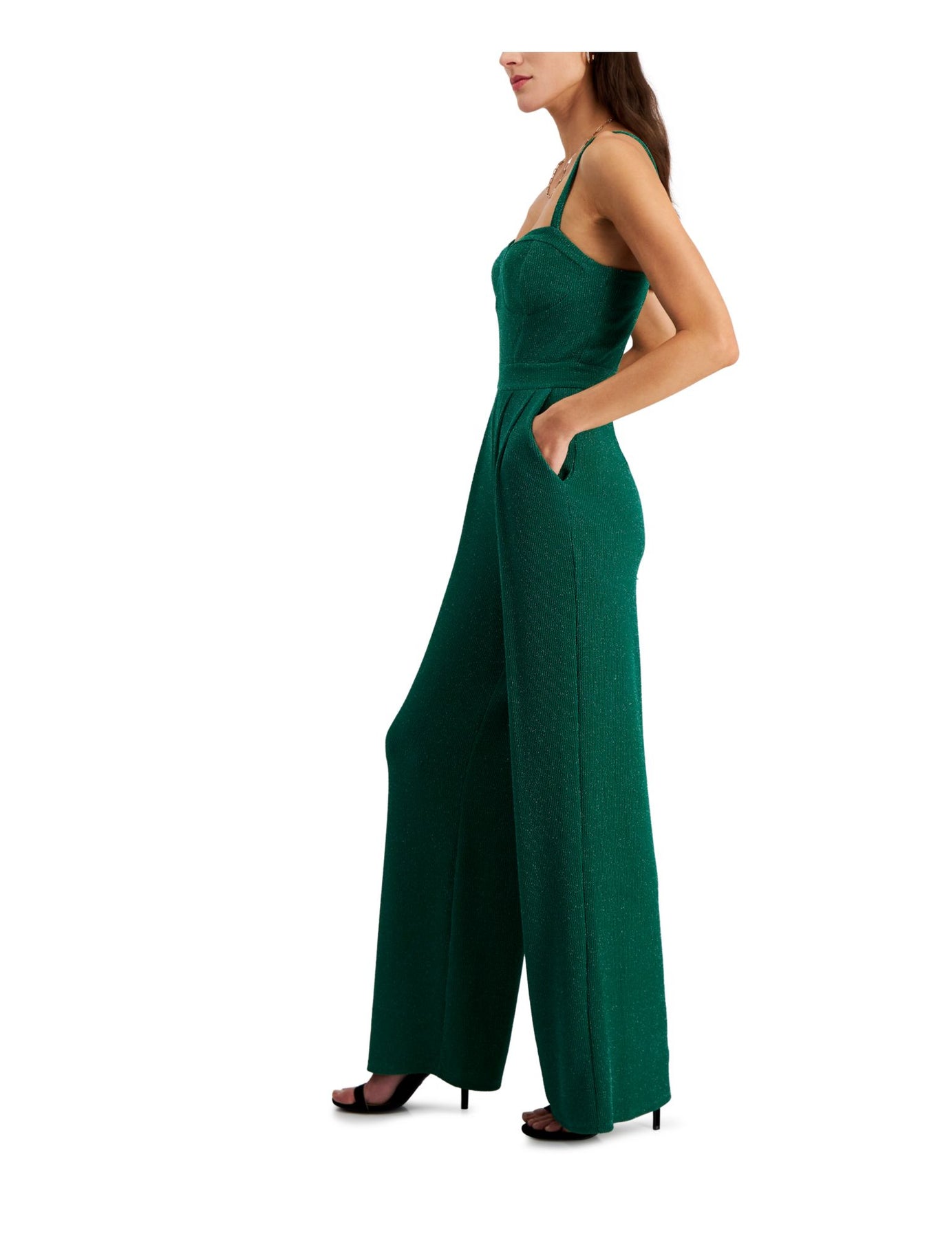 Womens Green Pleated Zippered Corset Bodice Pocketed Sleeveless Sweetheart Neckline Party Wide Leg Jumpsuit