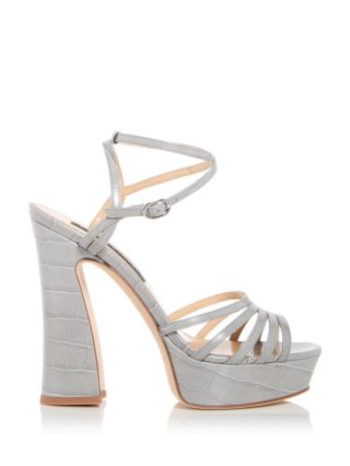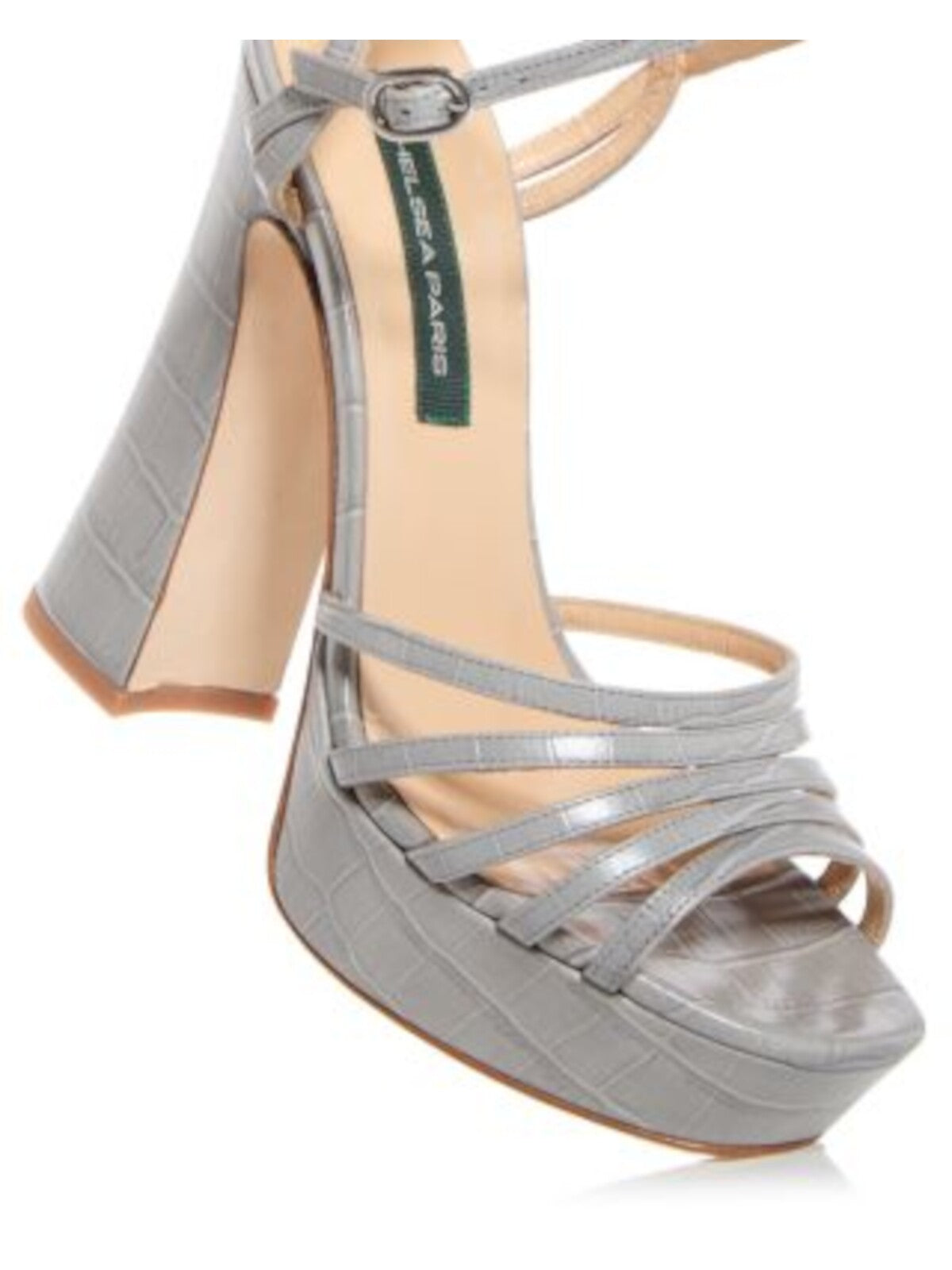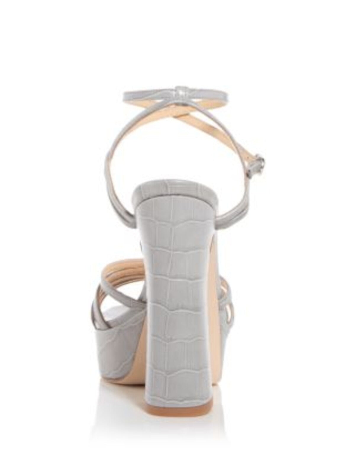 Womens Gray Croc Strappy 1-1/2" Platform Padded Ankle Strap Tems Open Toe Block Heel Buckle Leather Heeled
