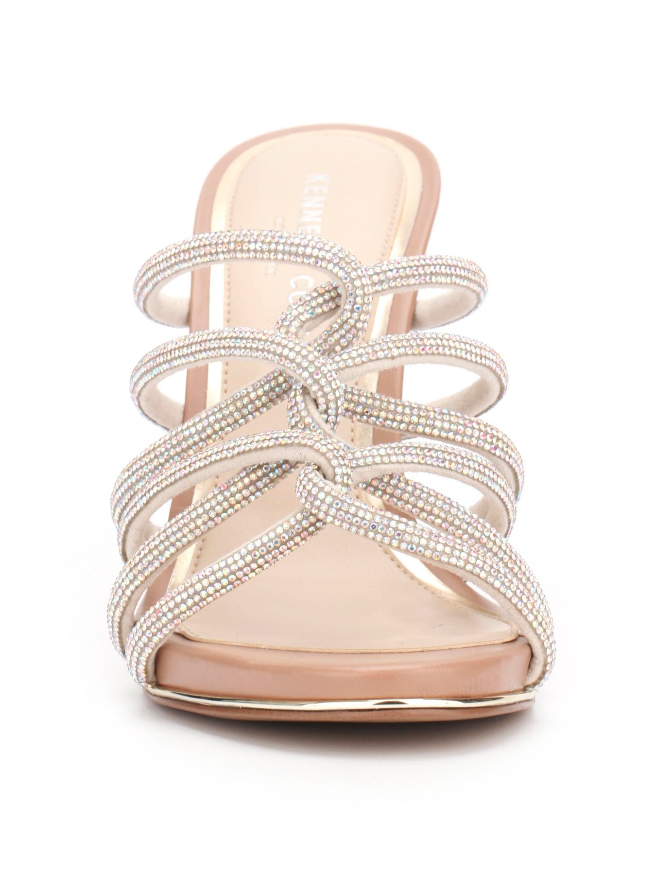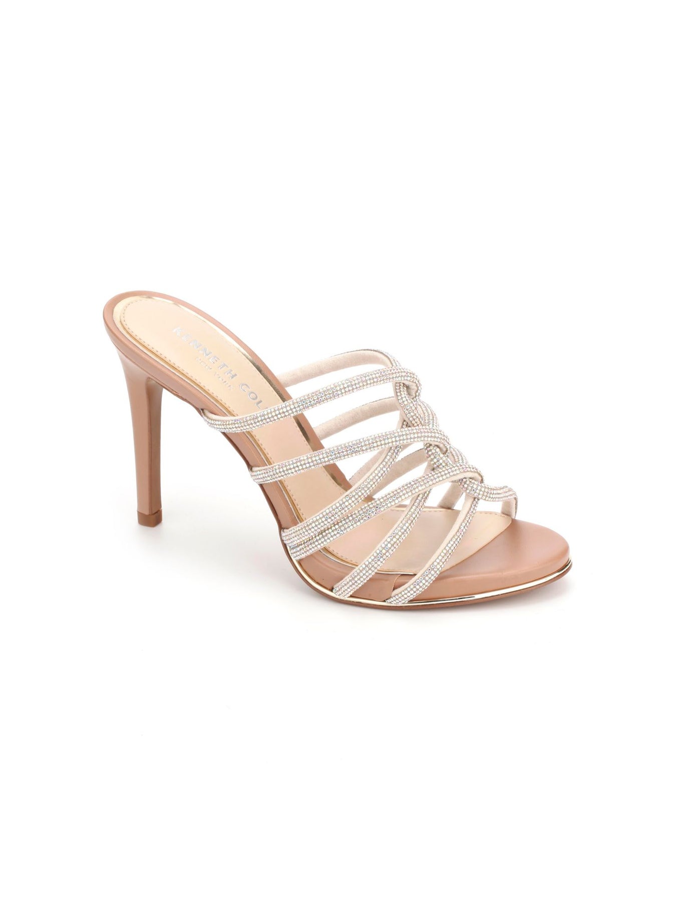 Womens Beige Jeweled Twisted Straps Padded Rhinestone Brooke 95 Twist Almond Toe Stiletto Slip On Heeled M
