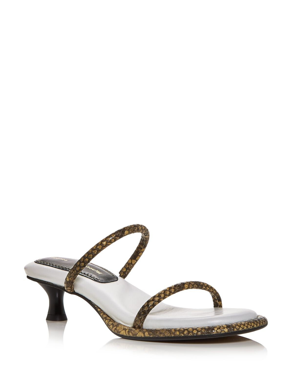 Womens Beige Snake Cushioned Strappy Lorna Round Toe Kitten Heel Slip On Leather Heeled