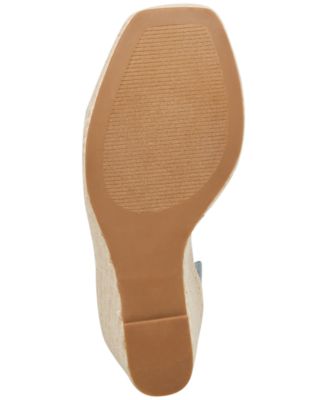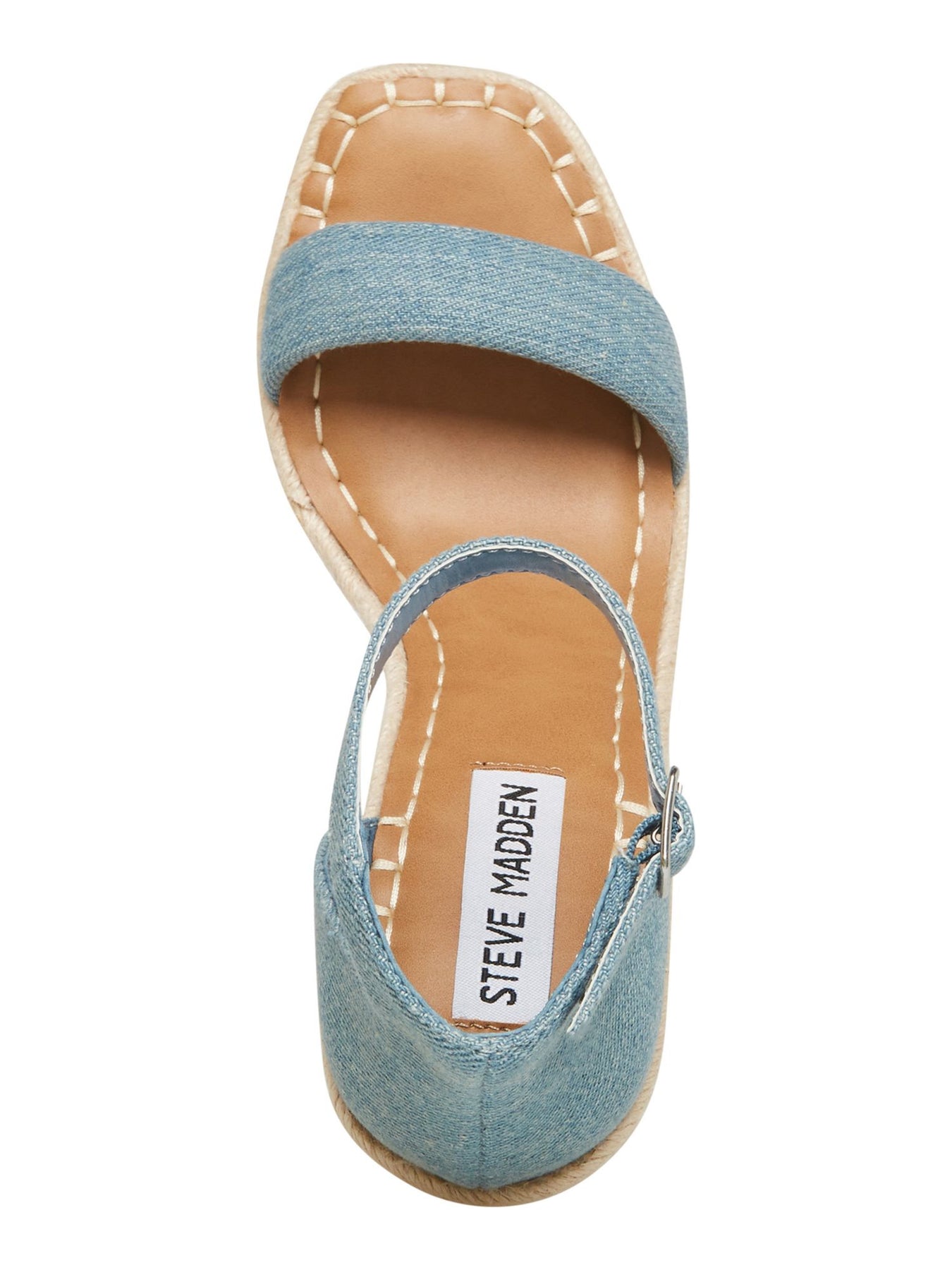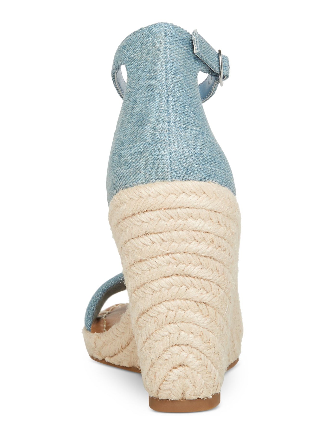 Womens Blue Cushioned Woven 1/2" Platform Adjustable Strap Ankle Strap Submit Square Toe Wedge Buckle Espadrille Shoes M