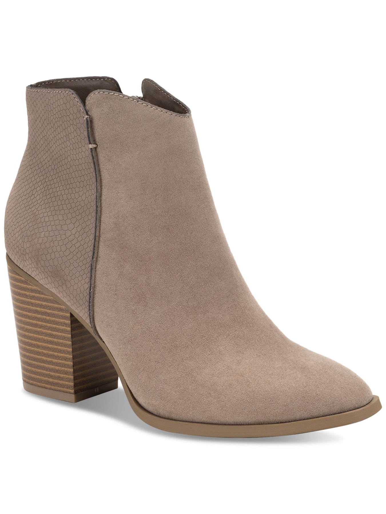 SUN STONE Womens Beige Cushioned Graceyy Round Toe Block Heel Zip-Up Booties M