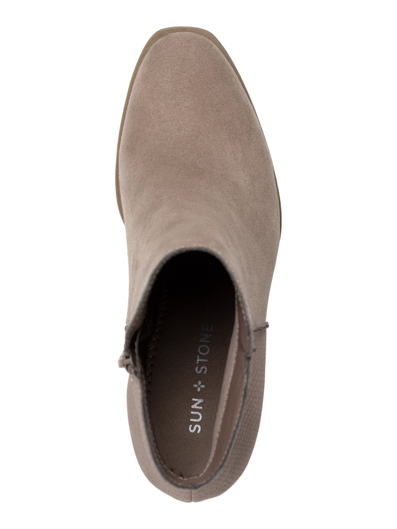 SUN STONE Womens Beige Cushioned Graceyy Round Toe Block Heel Zip-Up Booties 5.5 M