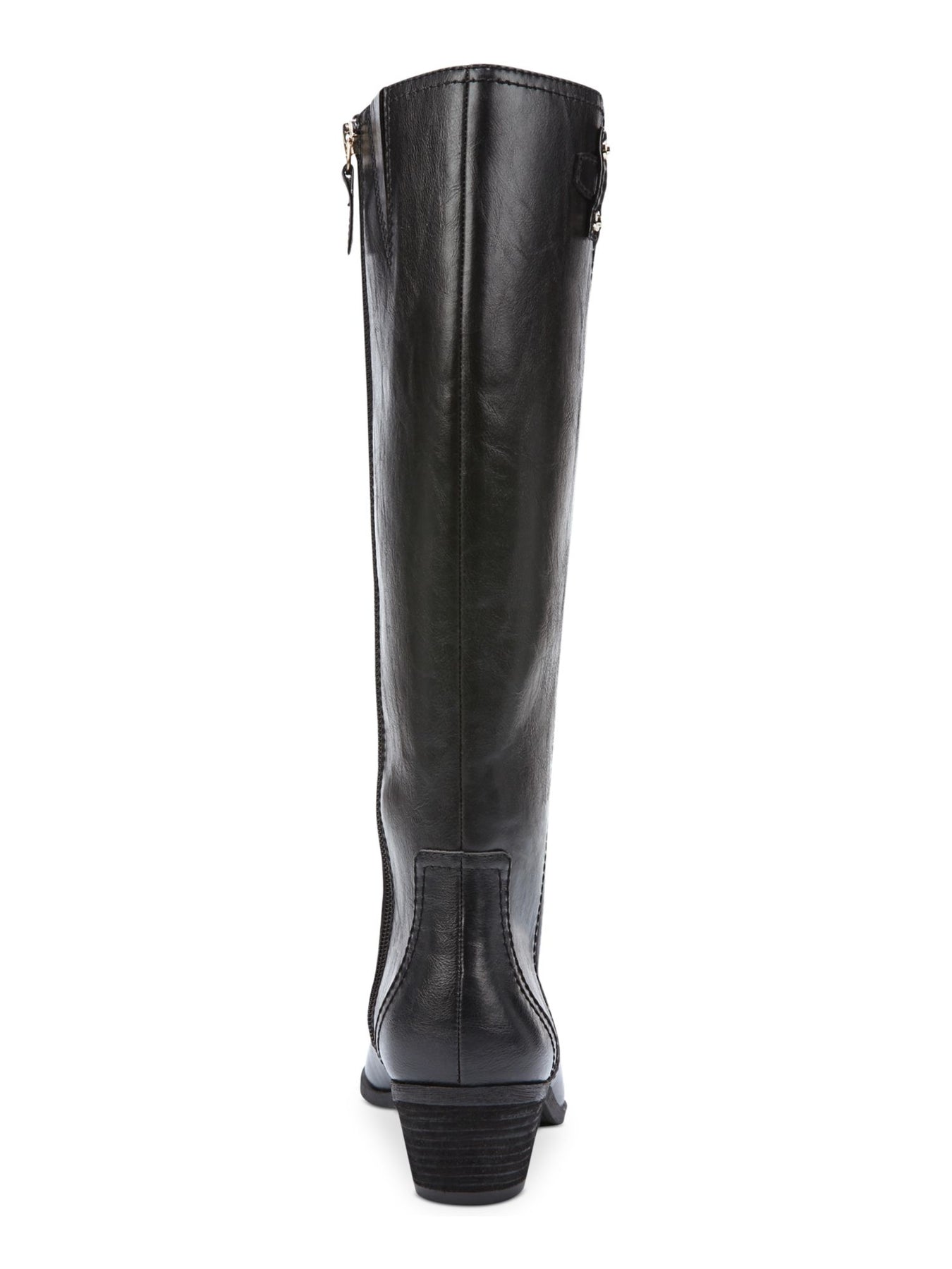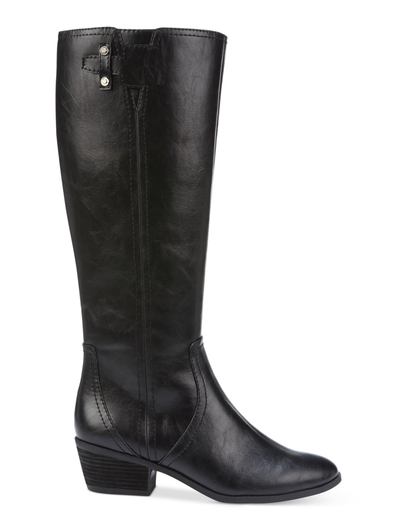 Womens Black Strap Detail Buckle Accent Brilliance Almond Toe Block Heel Zip-Up Riding Boot M