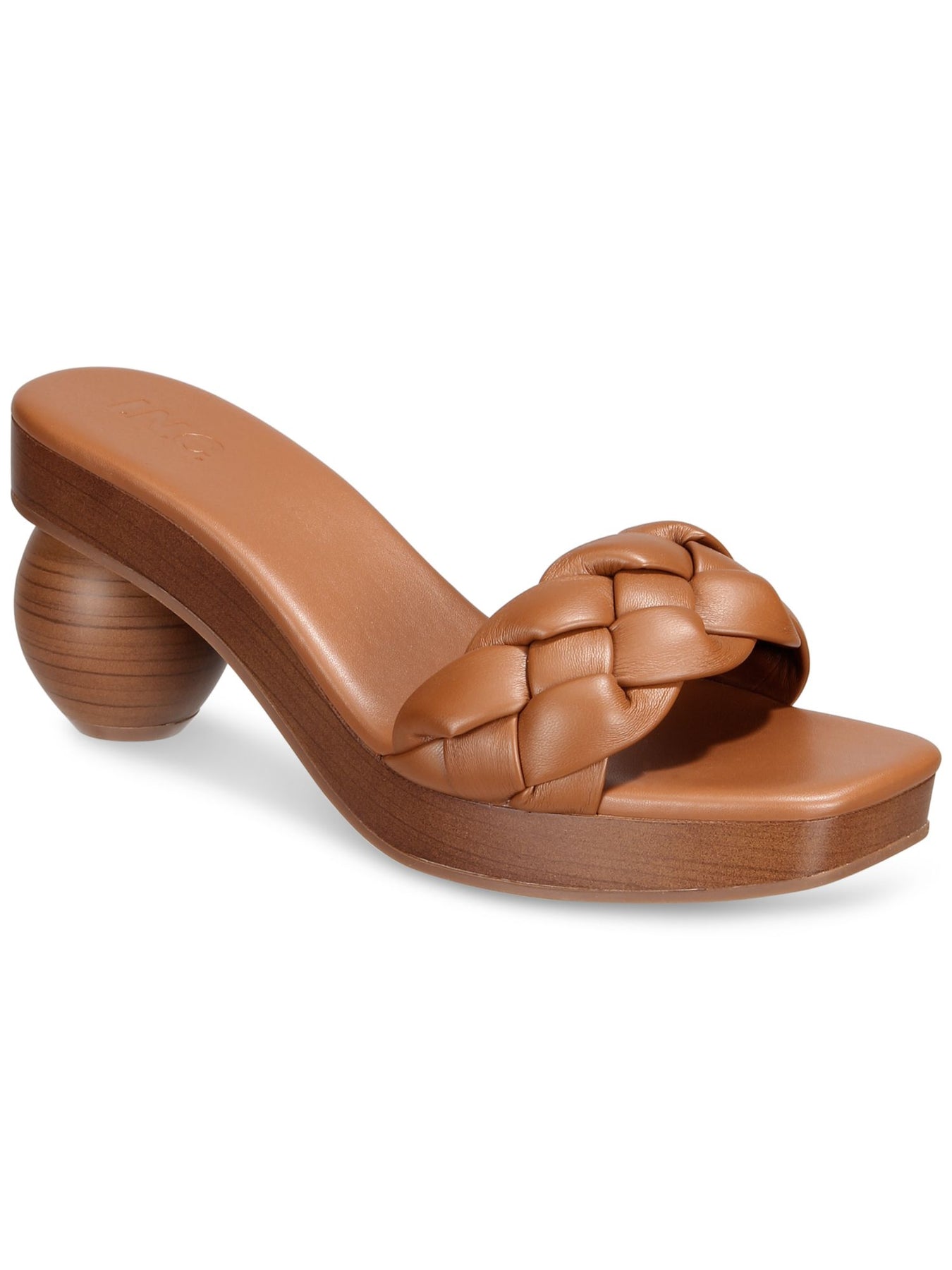 INC Womens Brown Woven Padded Zaleste Square Toe Sculpted Heel Slip On Heeled Sandal 5.5 M