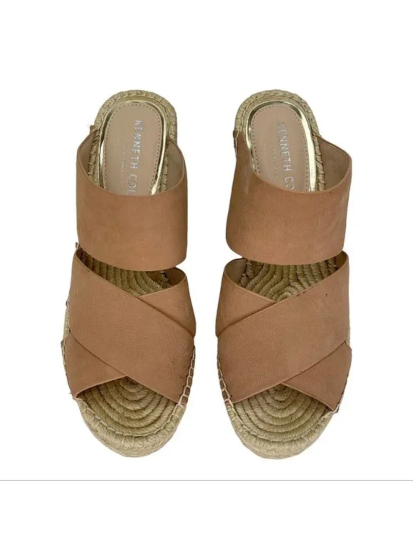 KENNETH COLE NEW YORK Womens Beige Crisscross Straps 1" Platform Cushioned Olivia Round Toe Wedge Slip On Leather Dress Espadrille Shoes 7