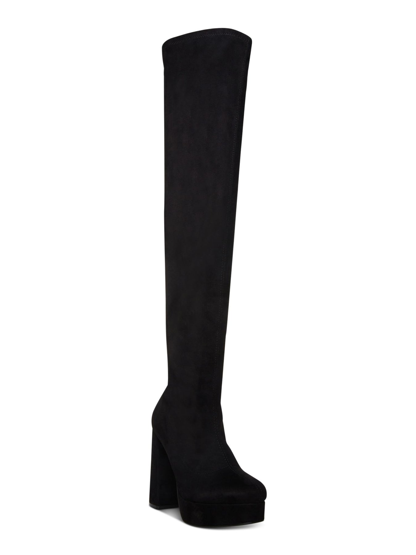 Womens Black 1" Platform Orin Round Toe Block Heel Zip-Up Dress Heeled Boots M
