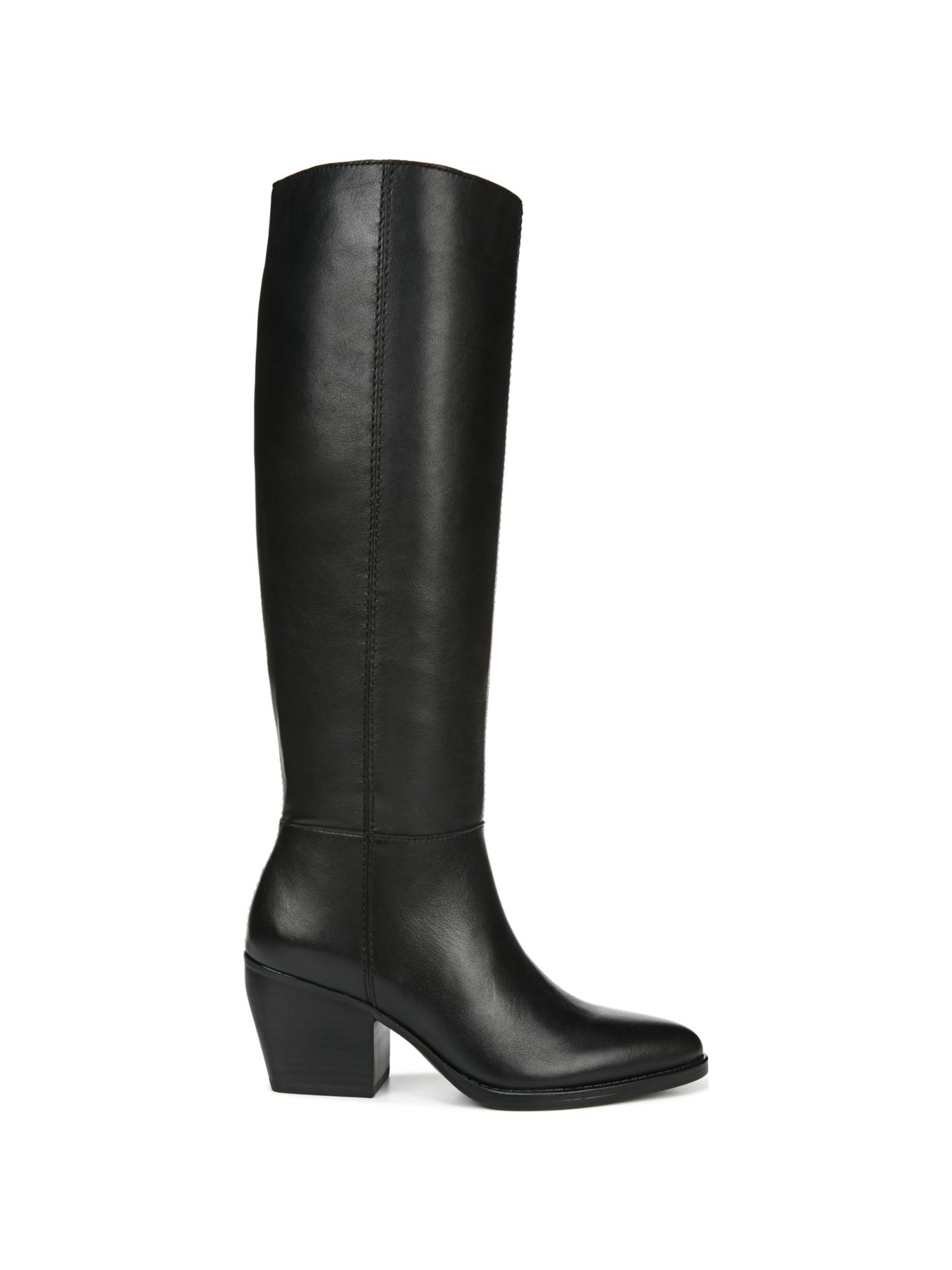 Womens Black Wide Calf Wide Calf Pointed Toe Stacked Heel Zip-Up Leather Heeled Boots M