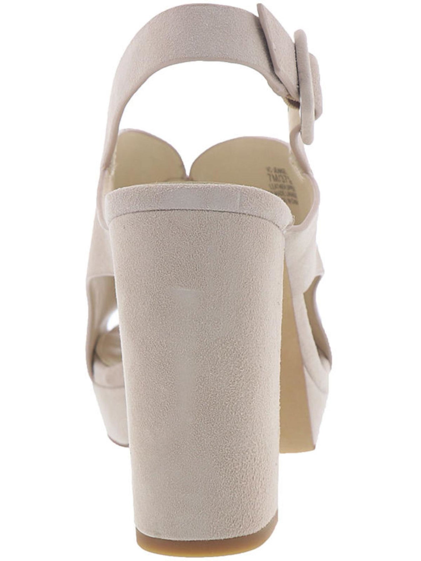 Womens Beige 1" Platform Side Cutouts Padded Jeangel Round Toe Block Heel Buckle Leather Dress Slingback Sandal M