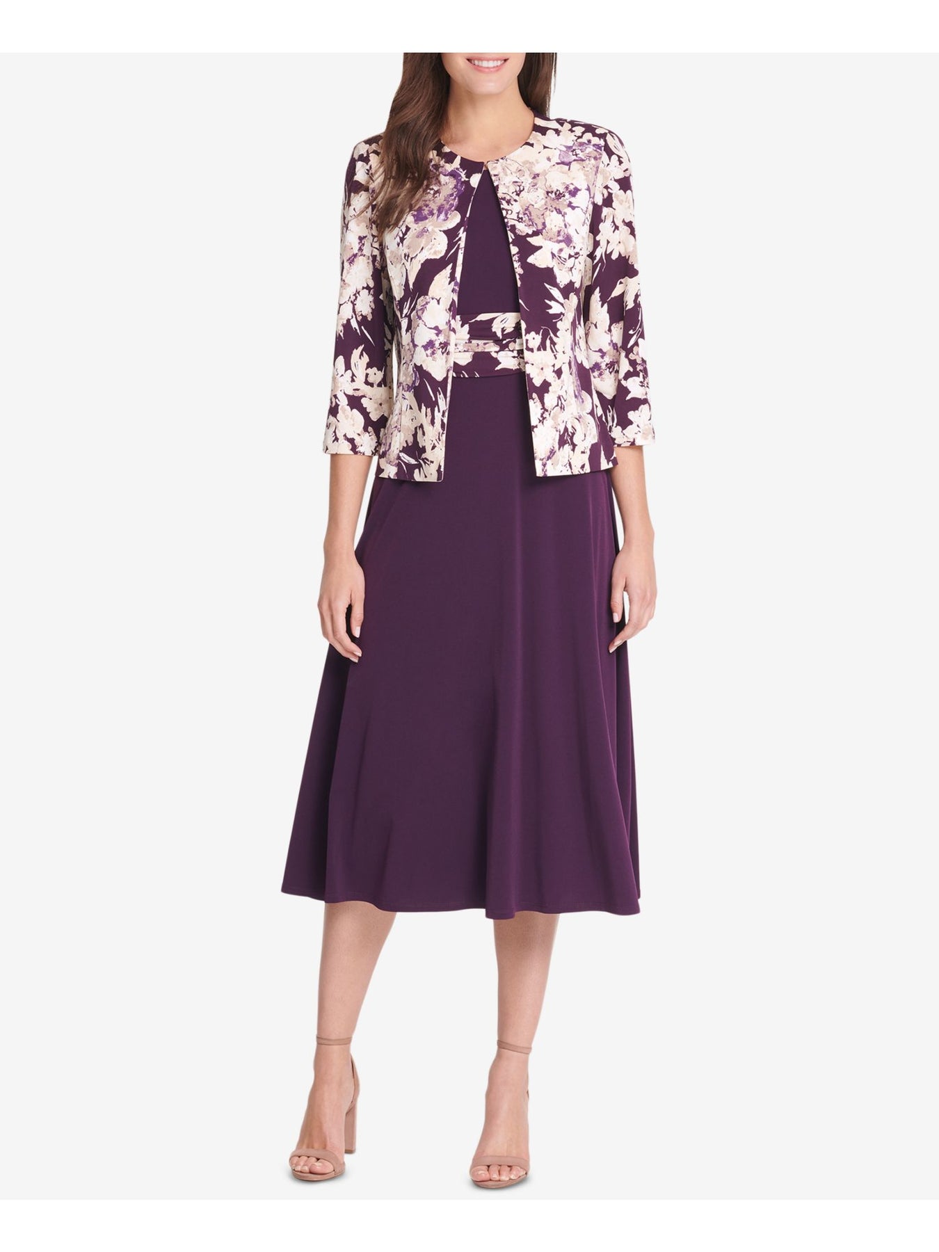 JESSICA HOWARD Womens Purple Floral Wear To Work Suit Jacket Petites 4P