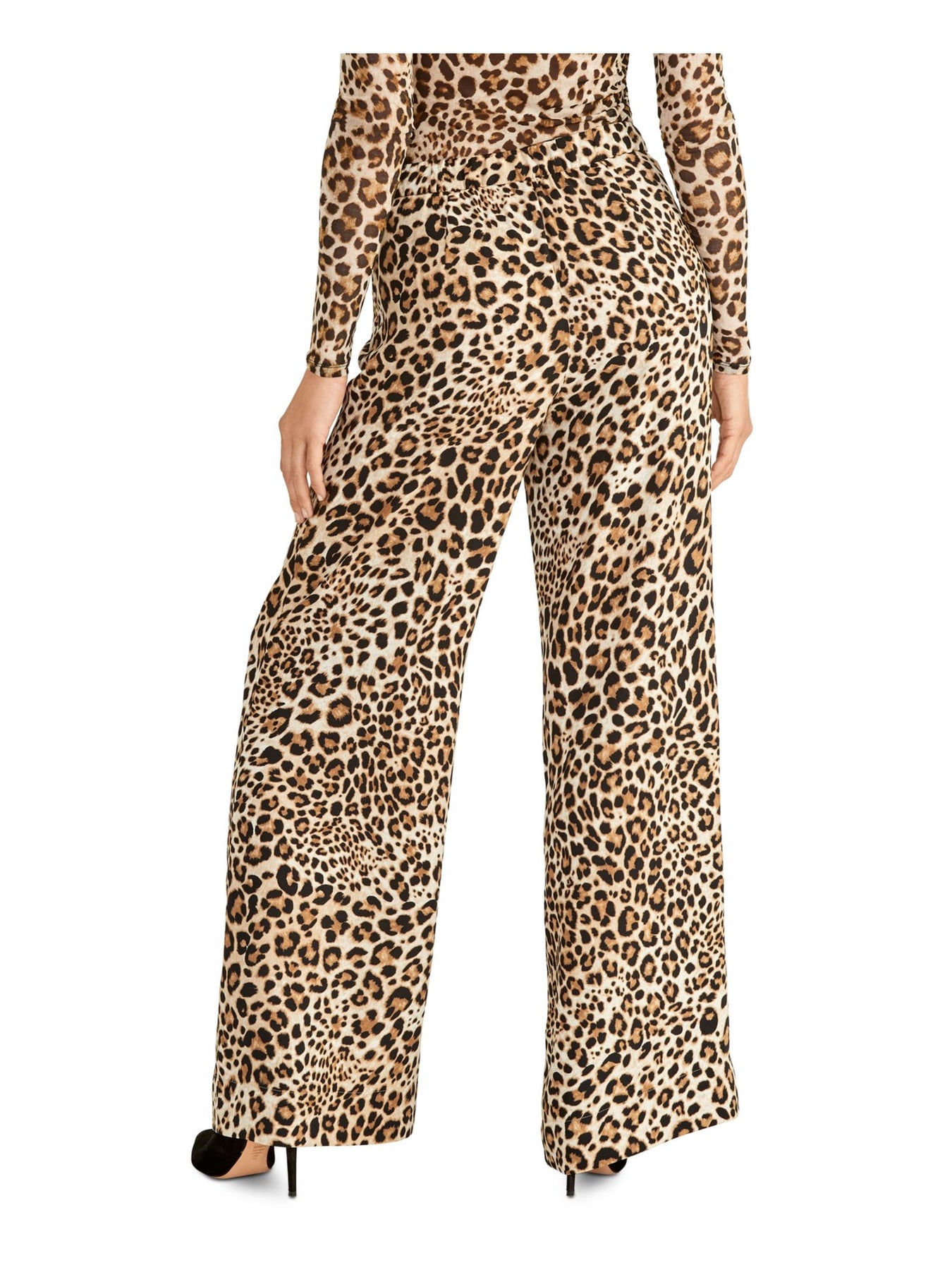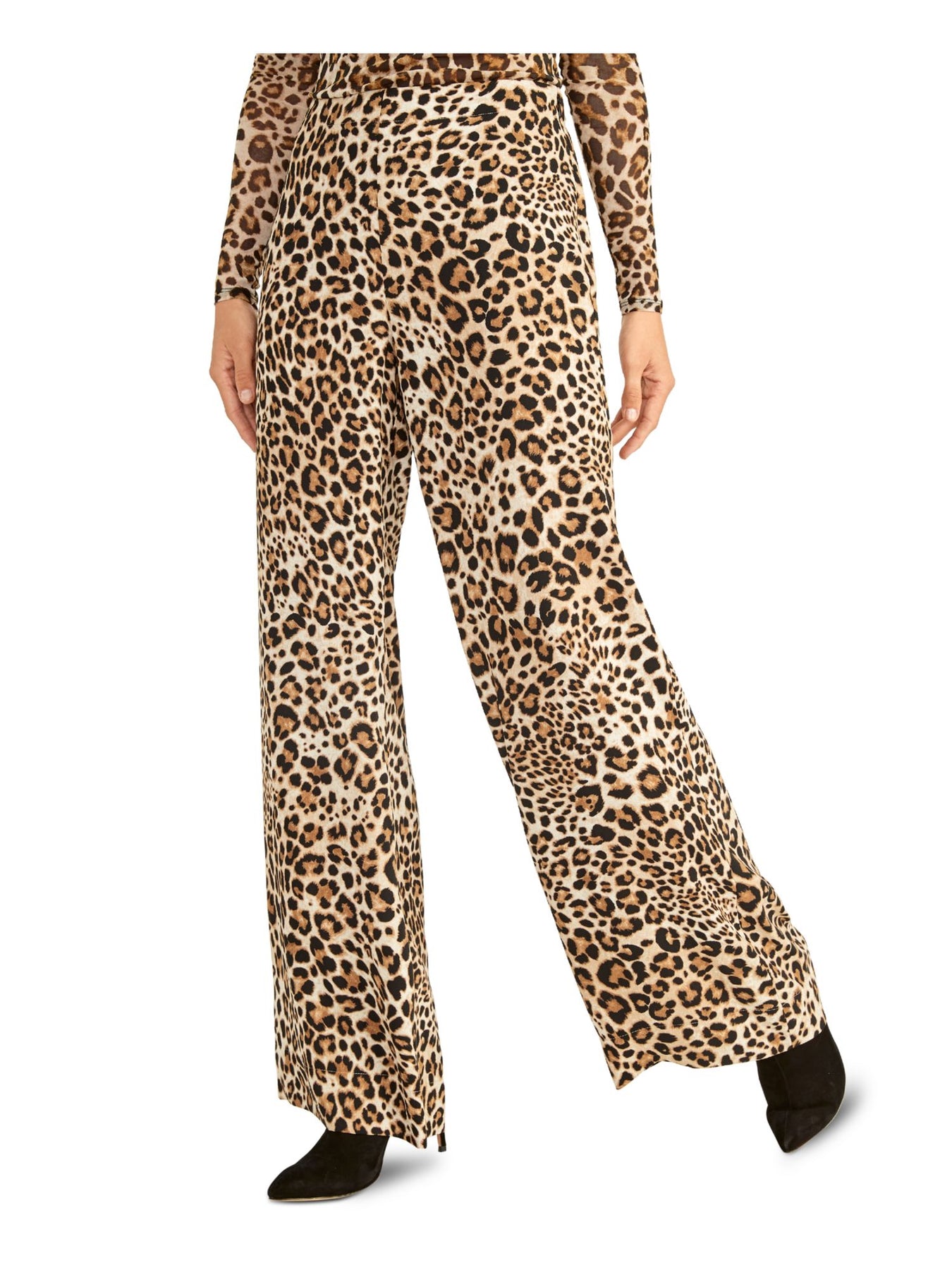 Womens Zippered Animal Print Wide Leg Pants