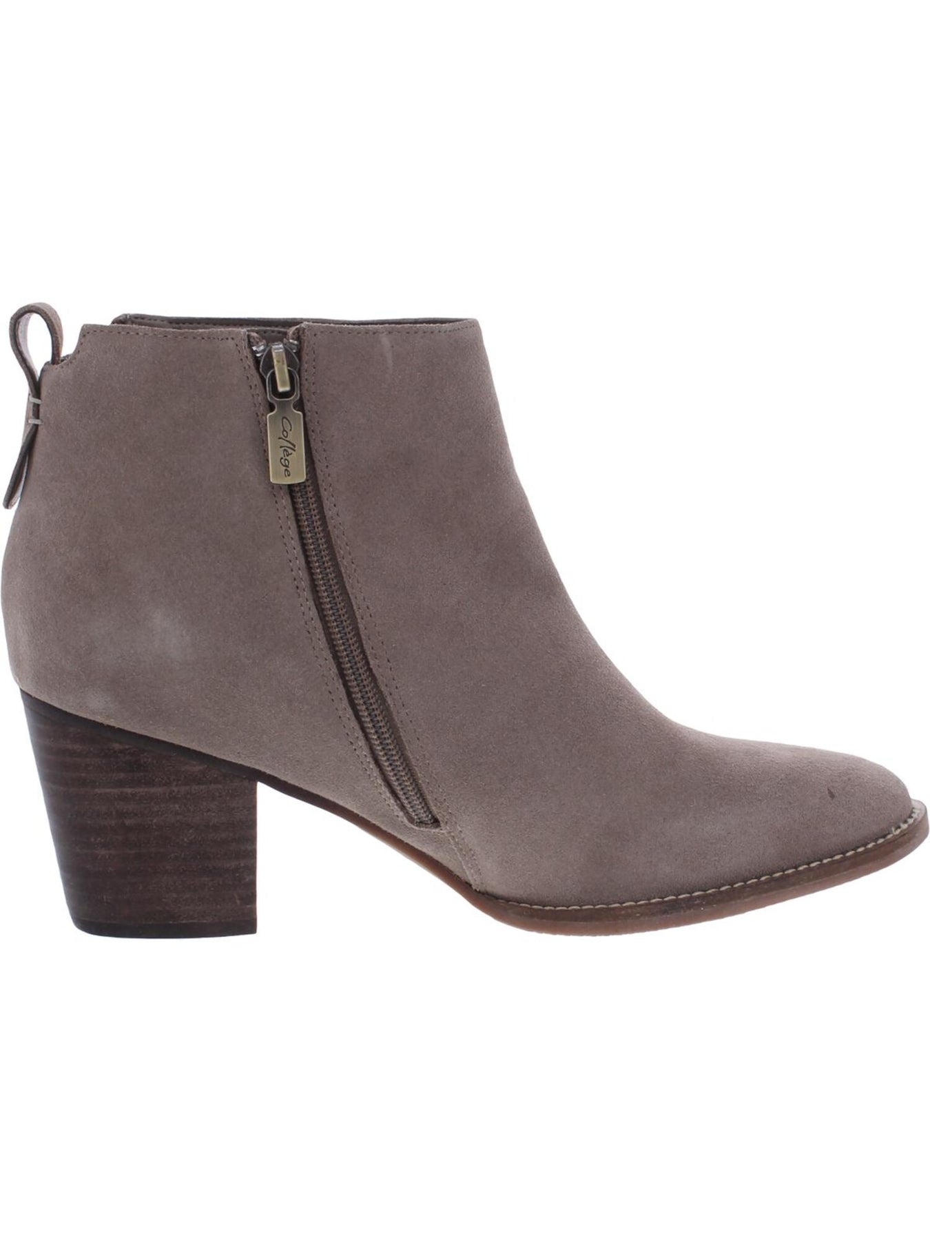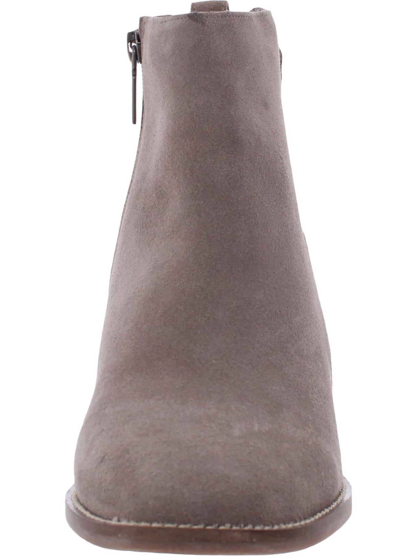 Womens Gray Western Style Waterproof Cushioned Zipper Accent Nancy Almond Toe Block Heel Zip-Up Leather Booties M