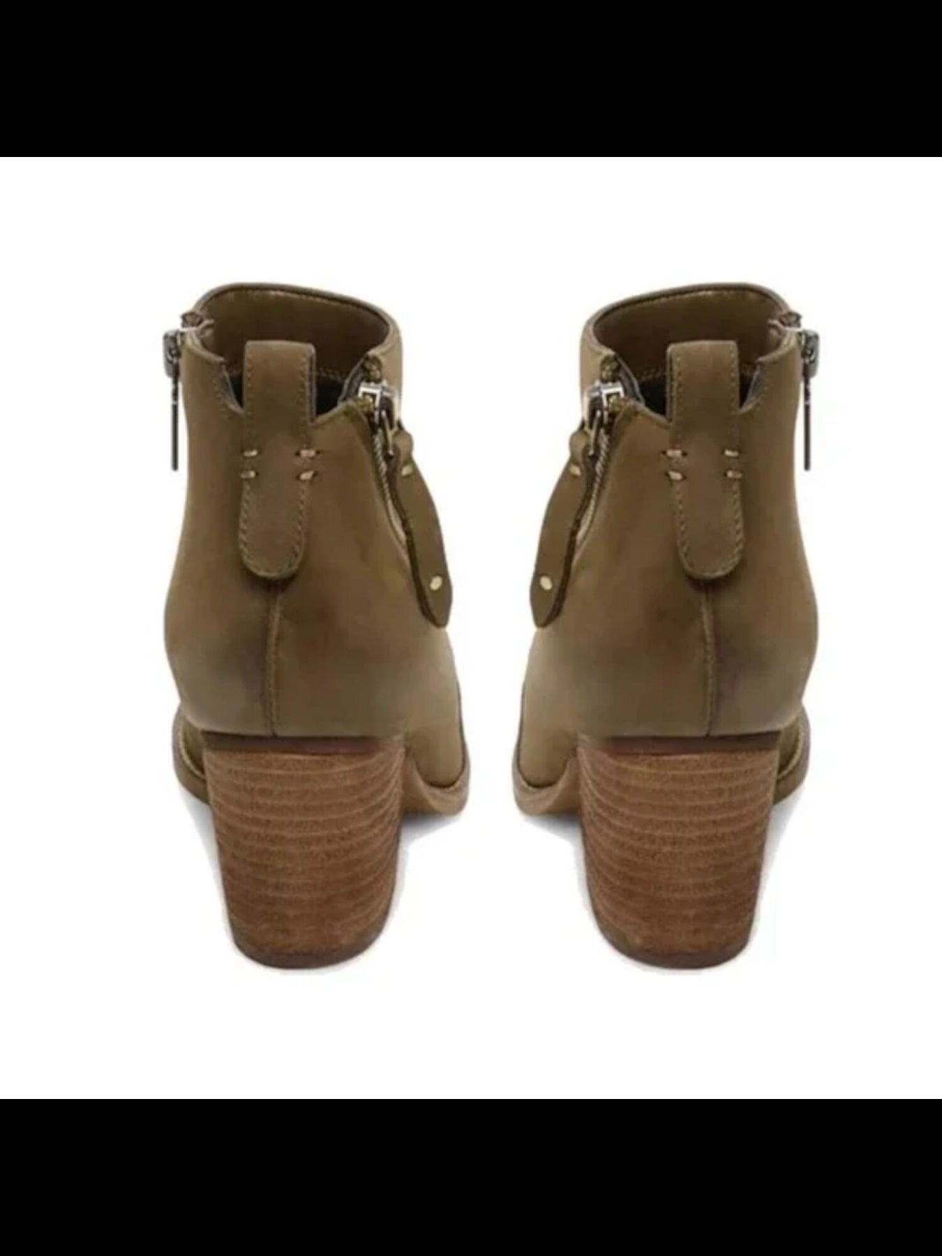 Womens Green Waterproof Back Pull Tab Comfort Zipper Accent Nancy Round Toe Block Heel Zip-Up Leather Booties M