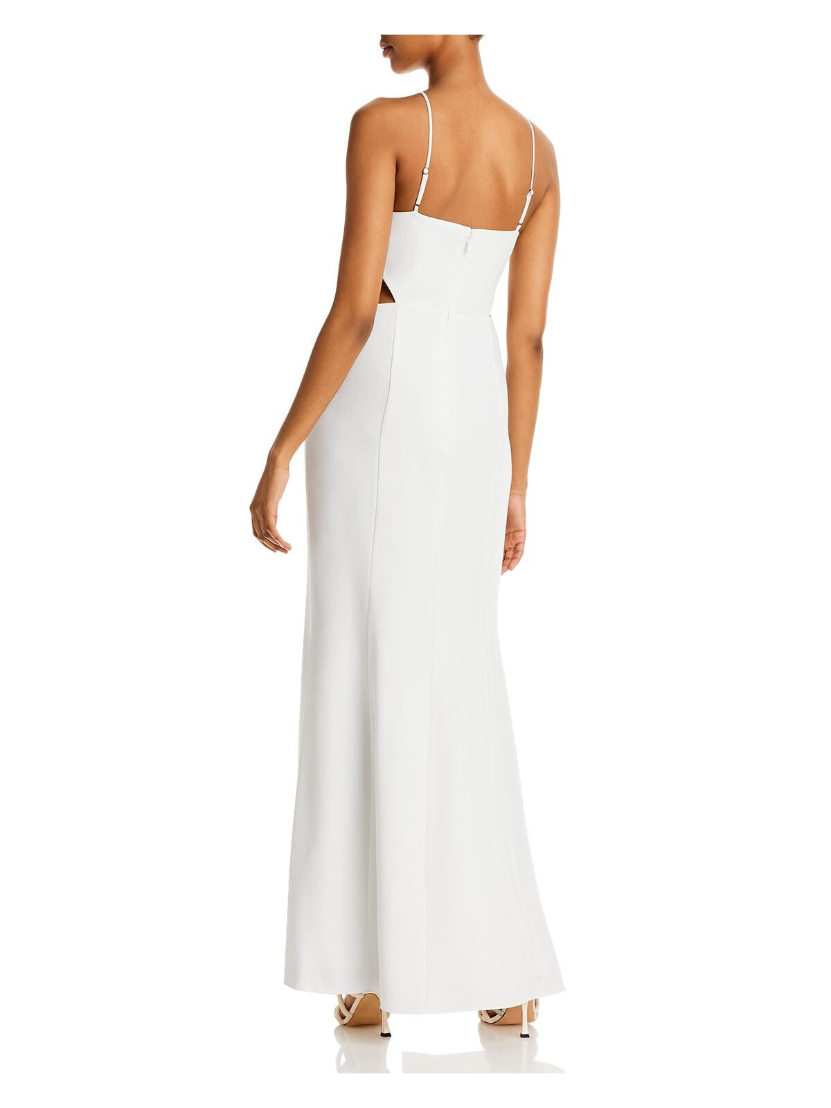Womens Ivory Zippered Adjustable Side Cutouts Lined Sleeveless Halter Full-Length Evening Sheath Dress