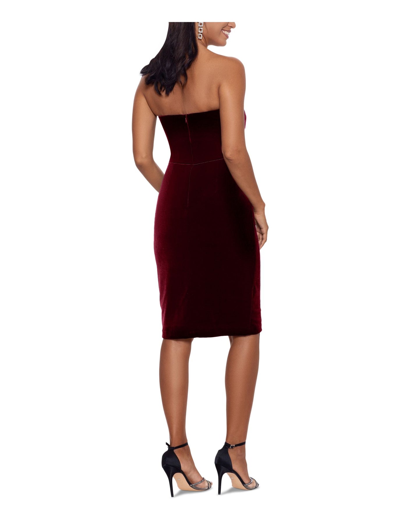 BETSY & ADAM Womens Burgundy Stretch Zippered Ruffled Slit  Lined Sleeveless Sweetheart Neckline Above The Knee Evening Sheath Dress 2