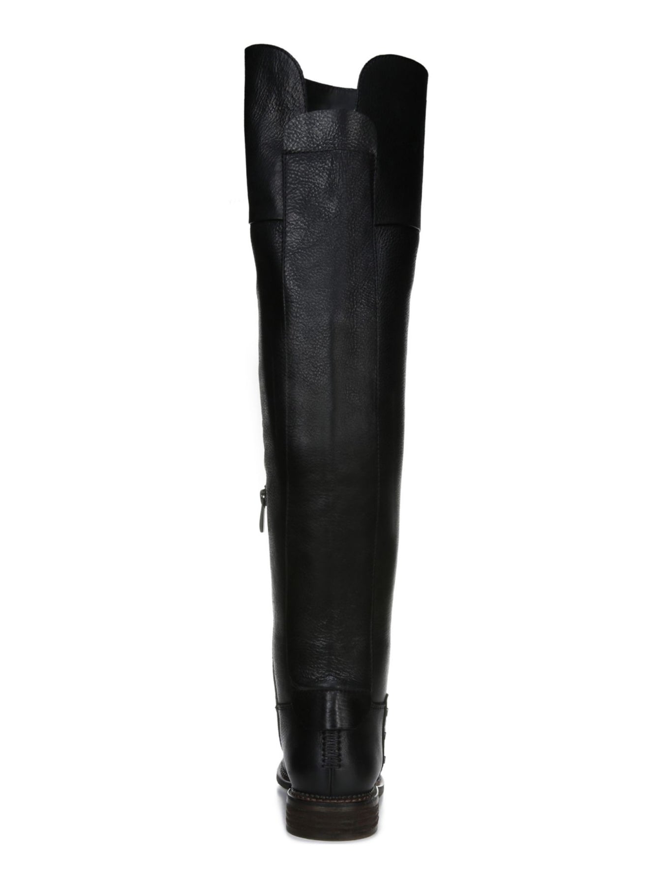 FRANCO SARTO Womens Black Logo Hardware Studded Goring Haleen Round Toe Block Heel Zip-Up Leather Heeled Boots 6 M