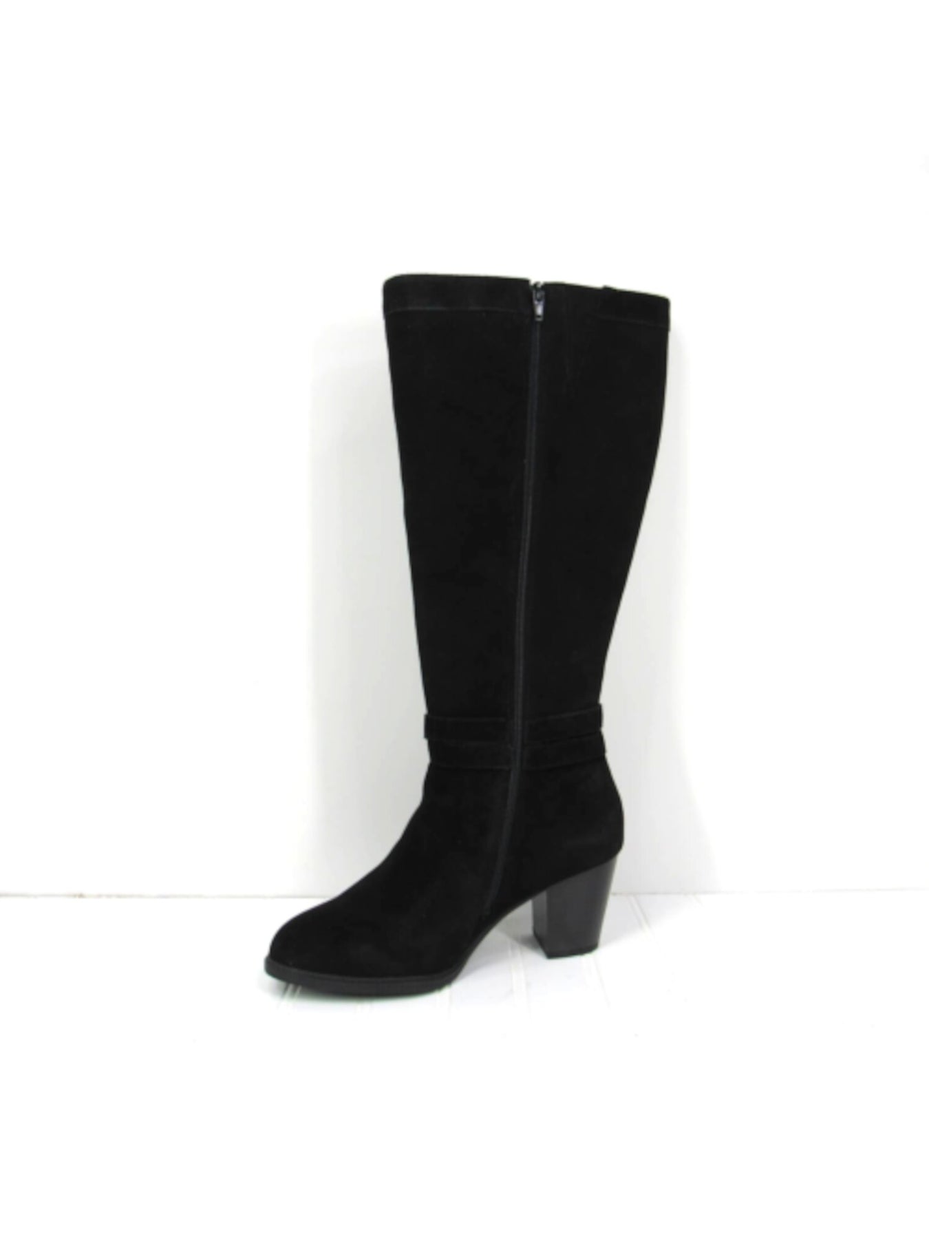 Womens Black Slip Resistant Buckle Accent Cushioned Arch Support Rozario Almond Toe Block Heel Zip-Up Leather Dress Boots Shoes M