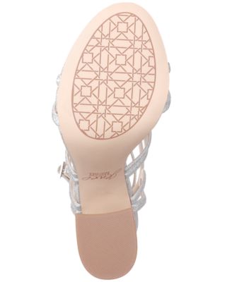 JEWEL BADGLEY MISCHKA Womens Silver Caged Padded Ankle Strap Glitter Shari Round Toe Flare Buckle Slingback Sandal
