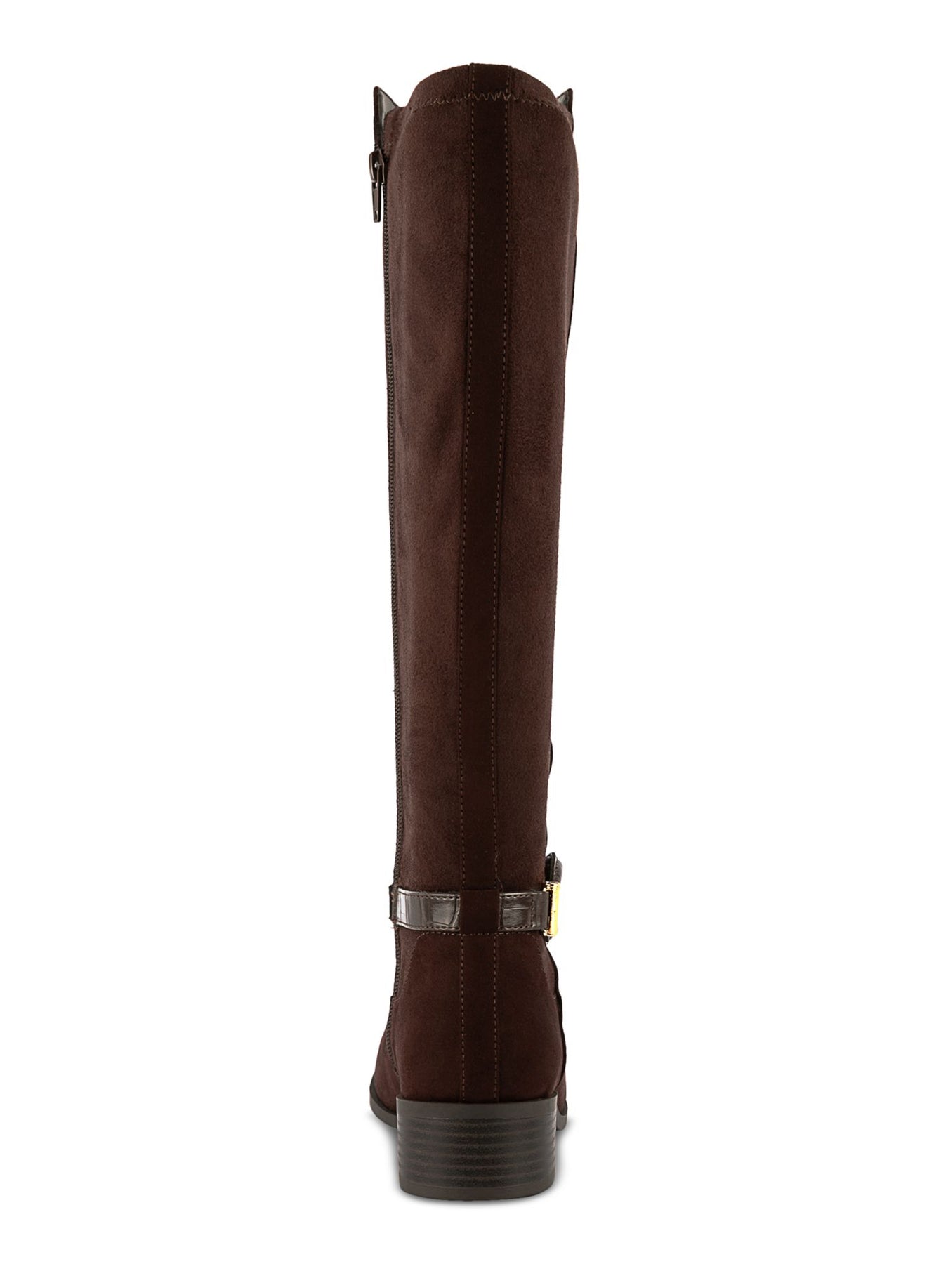 KAREN SCOTT Womens Brown Croc Buckle Accent Stretch Padded Stanell Almond Toe Block Heel Zip-Up Riding Boot 12 M