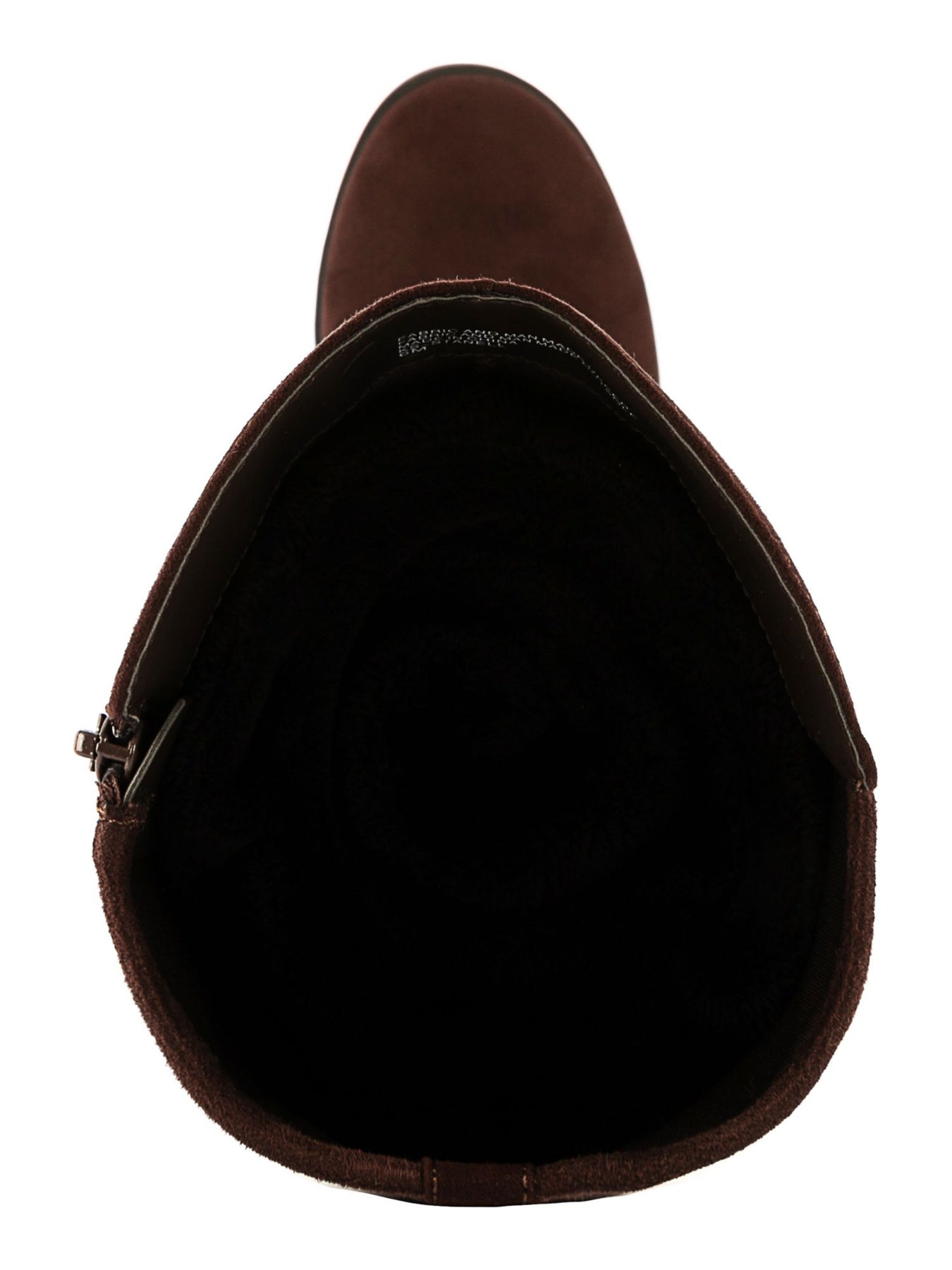 Womens Brown Croc Buckle Accent Stretch Padded Stanell Almond Toe Block Heel Zip-Up Riding Boot M
