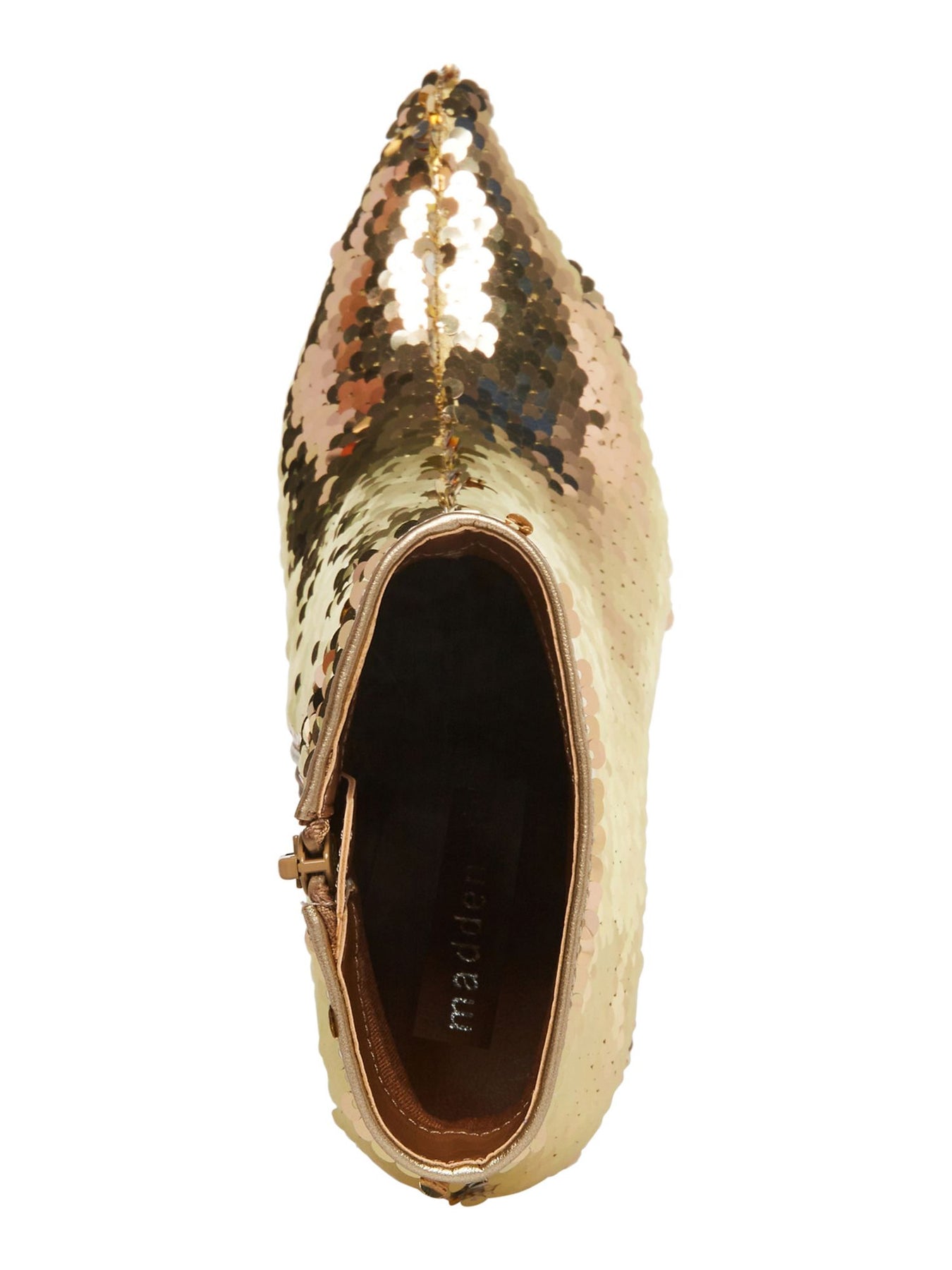 MADDEN GIRL Womens Gold Sequined Cody Pointed Toe Block Heel Zip-Up Booties M