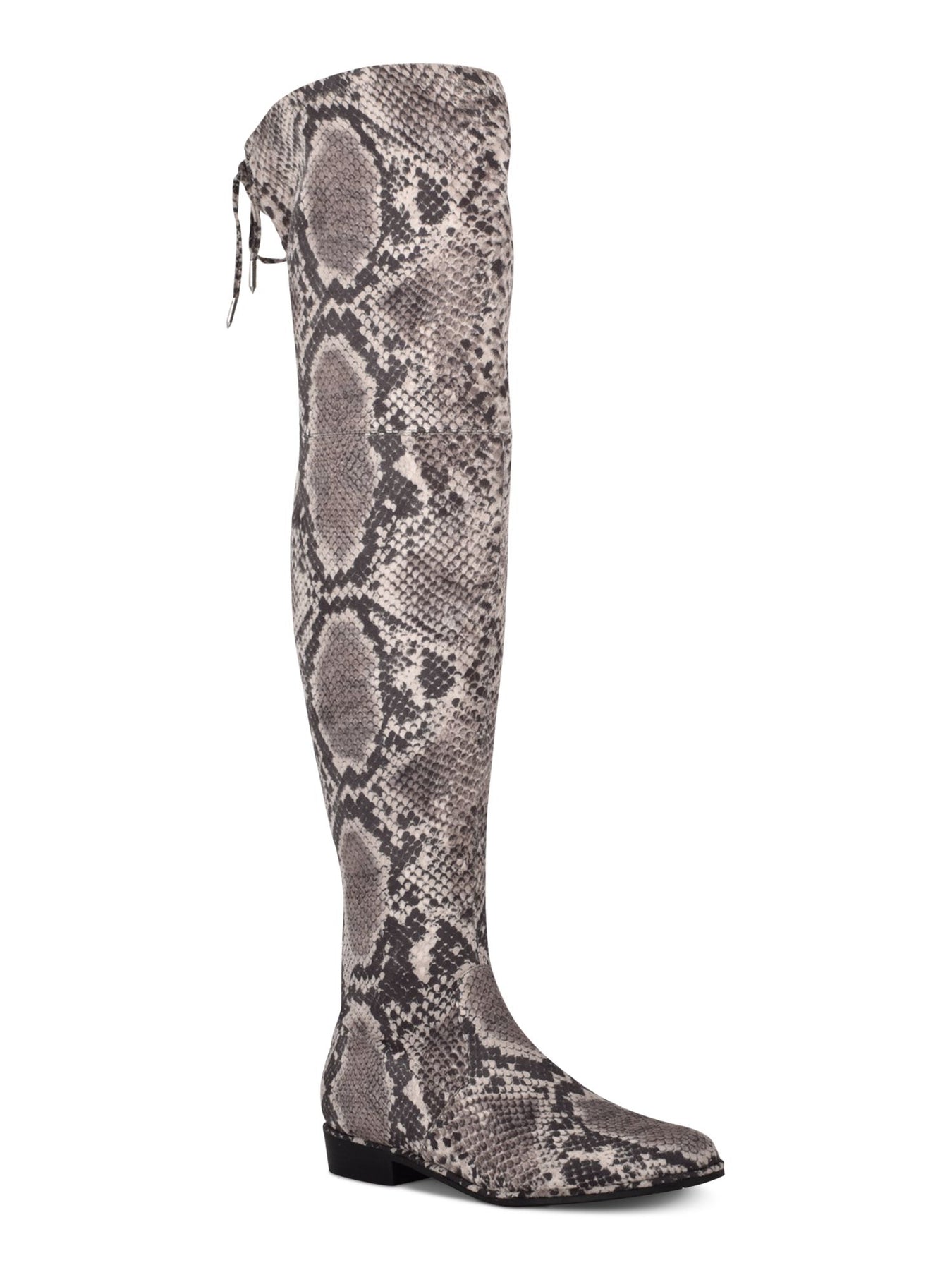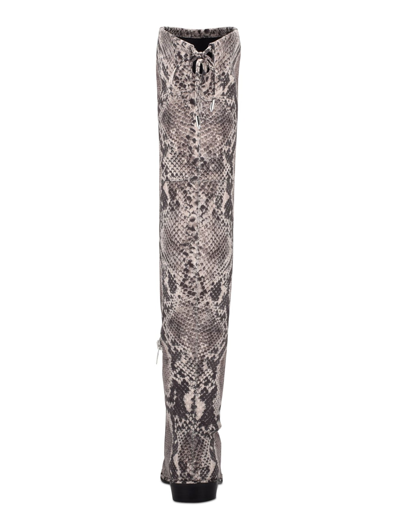 Womens Gray Drawstring Cushioned Humor Almond Toe Block Heel Zip-Up Dress Boots Shoes M