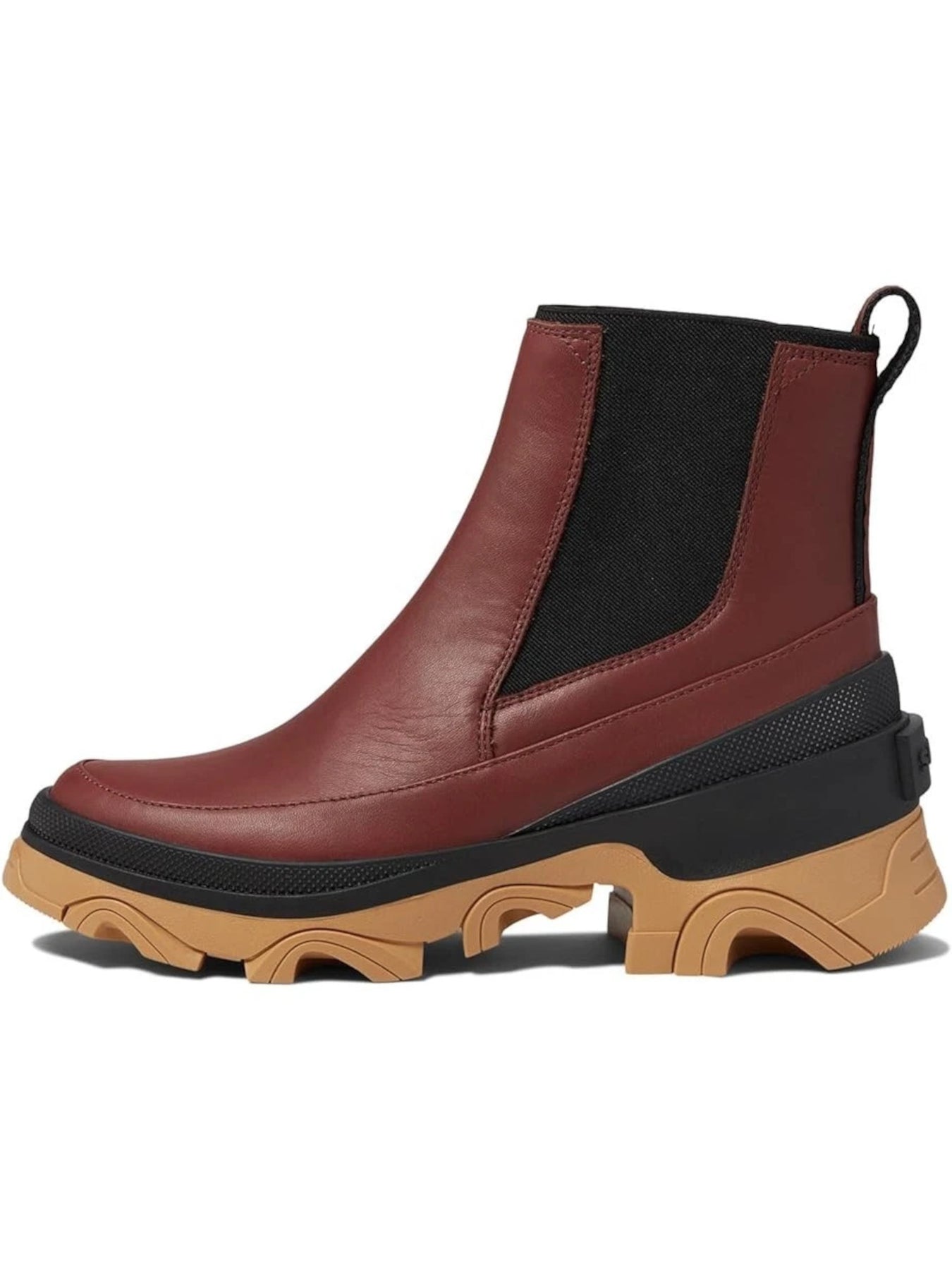 SOREL Womens Maroon Mixed Media 1-1/2" Platform Goring Removed Cushioned Insole Arch Support Waterproof Slip Resistant Brex Round Toe Wedge Slip On Leather Chelsea 9.5