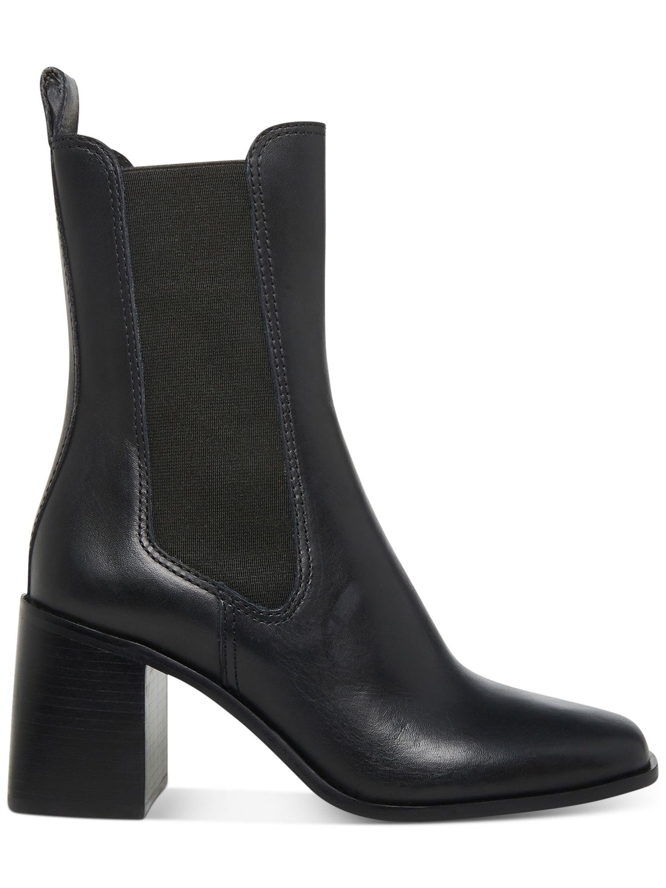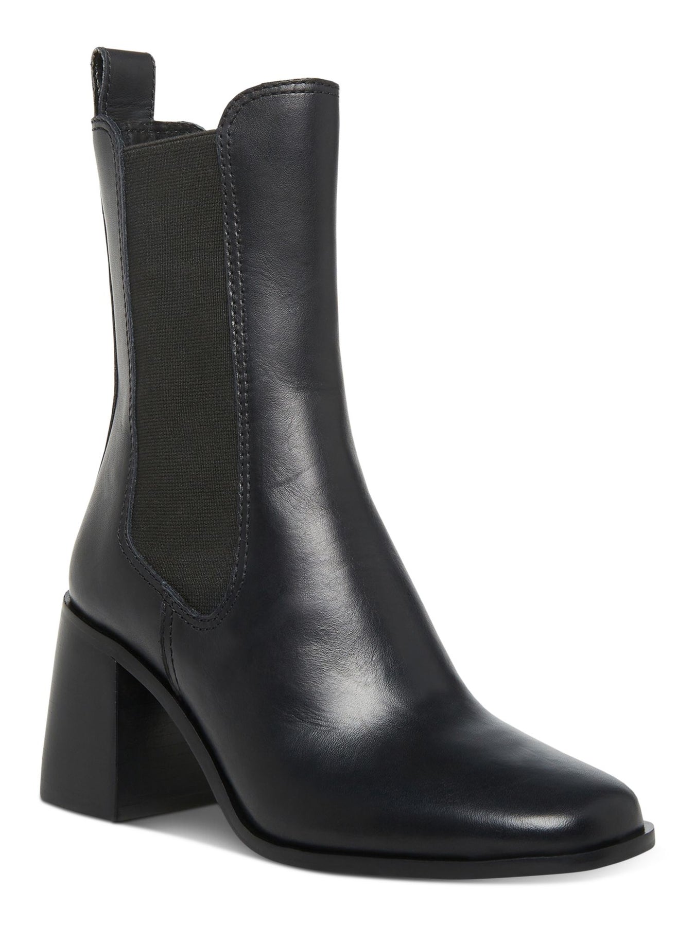 Womens Black Pull Tab Goring Padded Argent Round Toe Block Heel Leather Chelsea Boot M