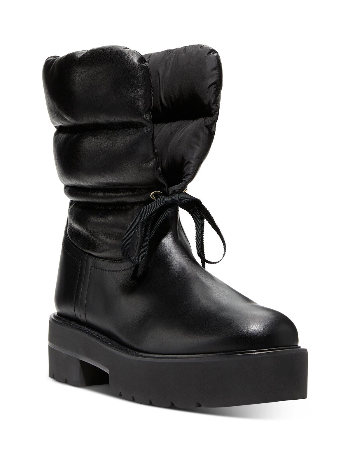 Womens Black Tie 1-1/2" Platform Padded Tyler Round Toe Block Heel Leather Booties B