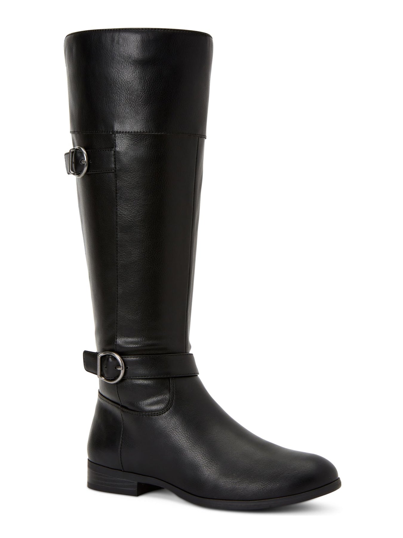 Womens Black Buckle Accent Slip Resistant Kezlin Round Toe Block Heel Zip-Up Riding Boot M