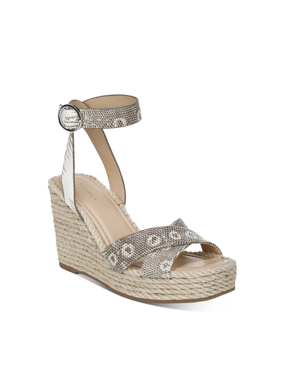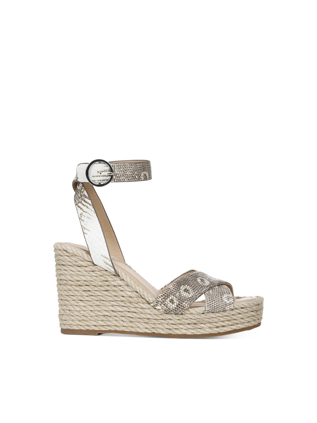 Womens Blanc Green Ring Lizard Skin Adjustable Strap Cushioned Sesilia Square Toe Wedge Buckle Leather Espadrille Shoes M