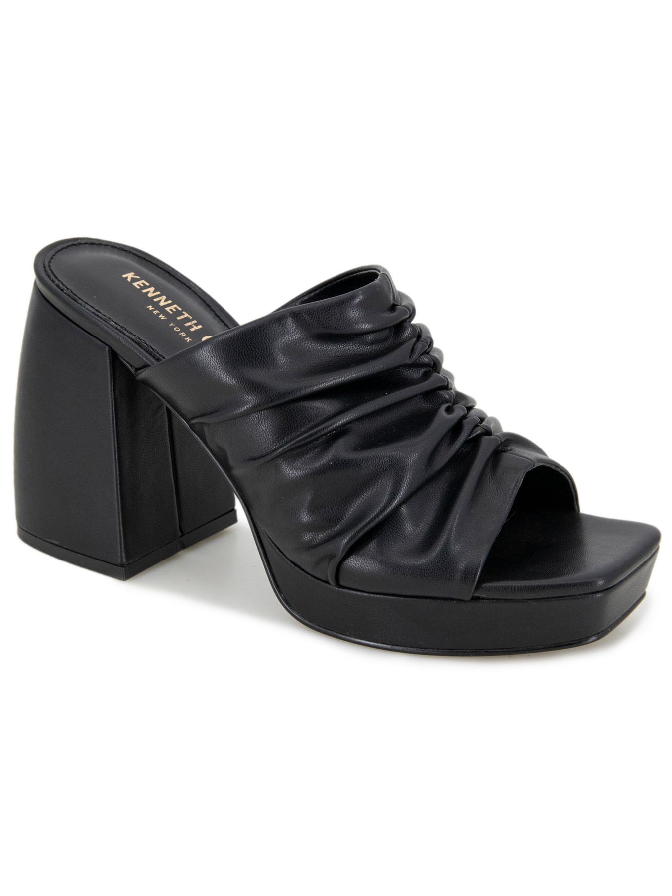 Womens Black Ruched Padded Anika Open Toe Sculpted Heel Slip On Heeled
