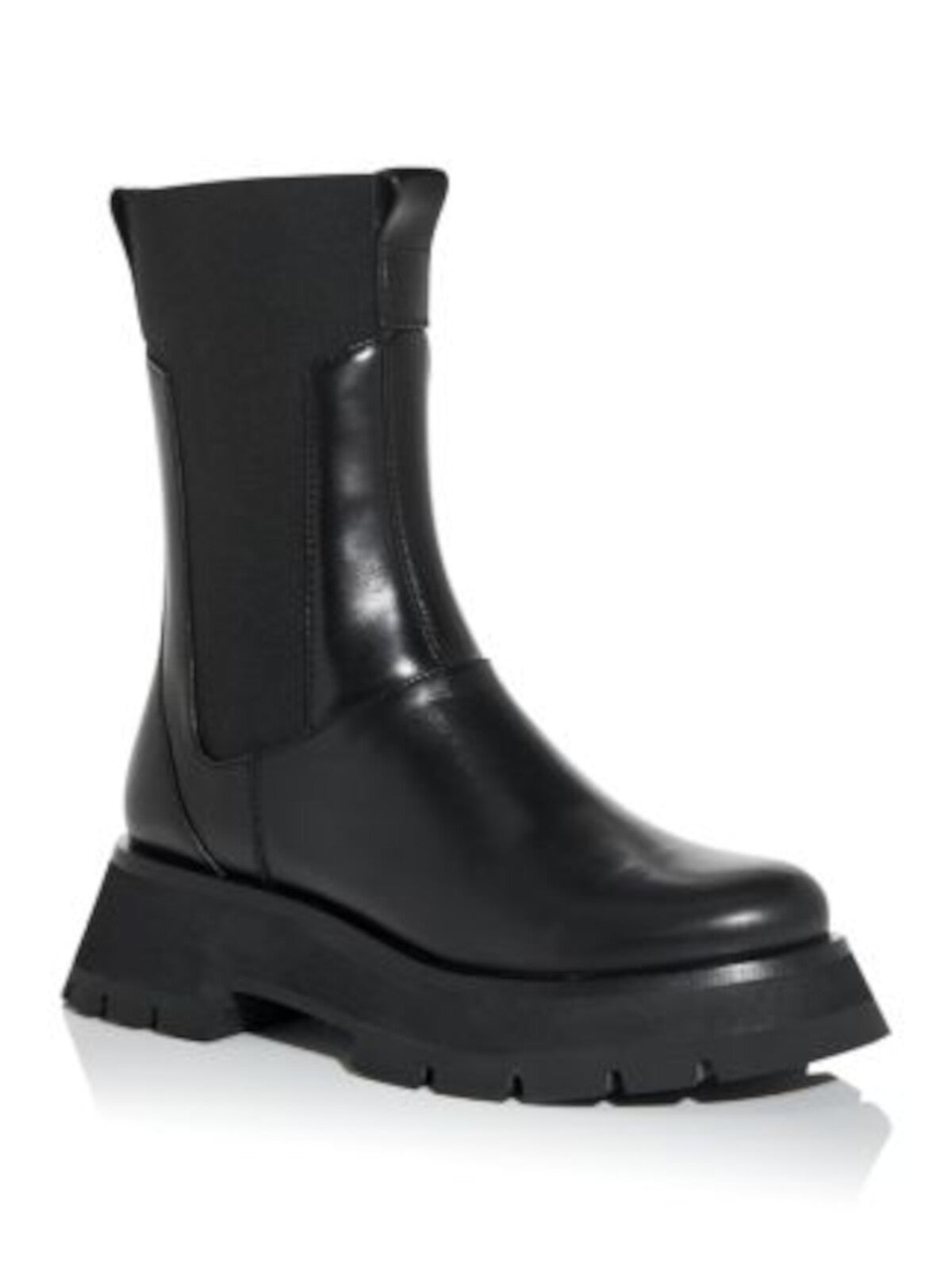 3.1 PHILLIP LIM Womens Black Pull Tab 1-1/2" Platform Goring Kate Round Toe Block Heel Leather Combat Boots 37