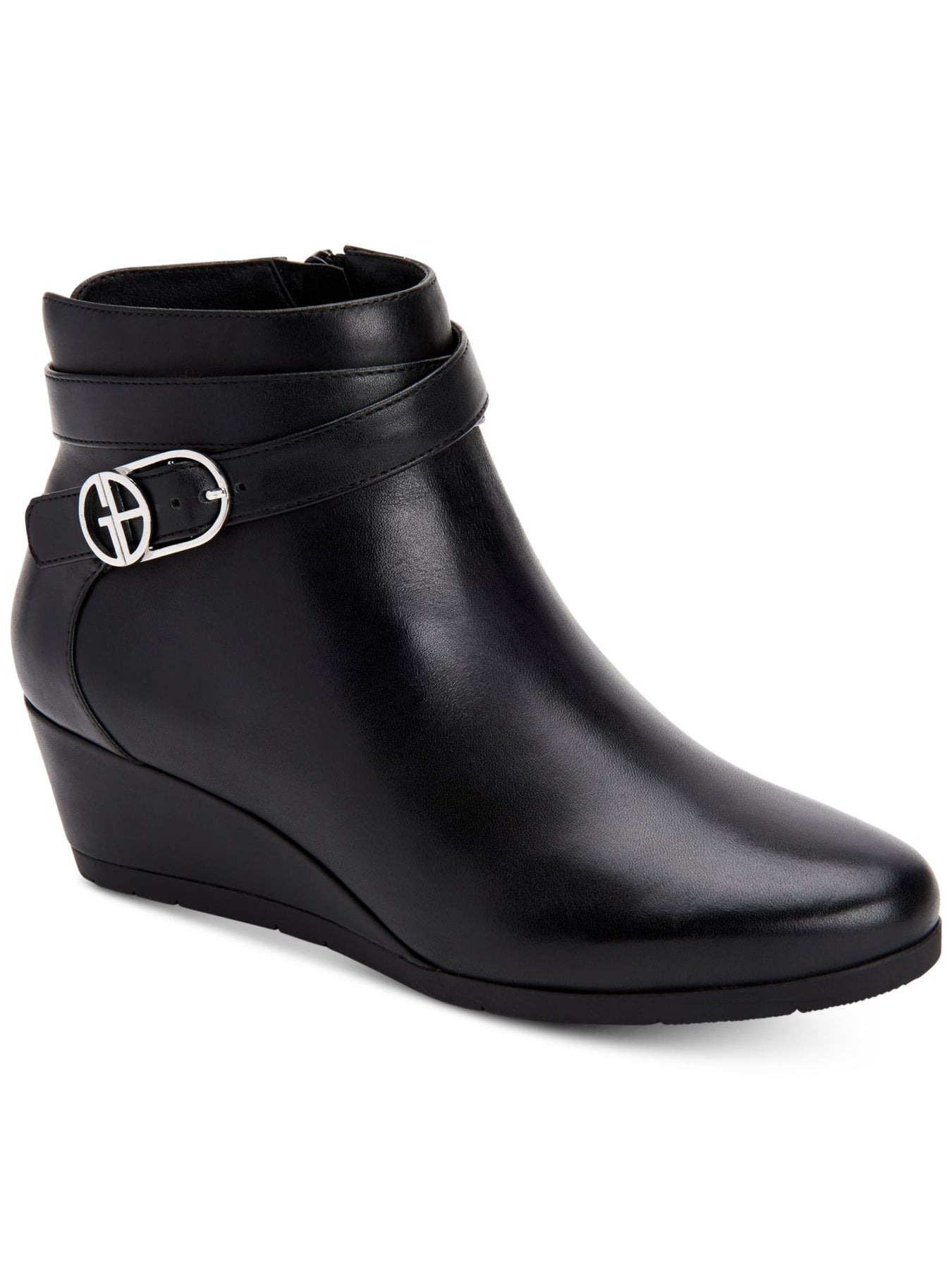 Womens Black Buckle Accent Strappy Cherub Round Toe Zip-Up Booties M