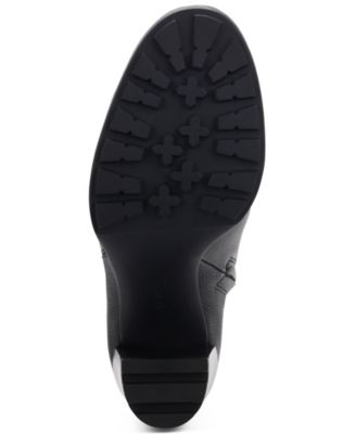 Womens Black Lug Sole Justin 2.0 Round Toe Block Heel Zip-Up Leather Heeled Boots M