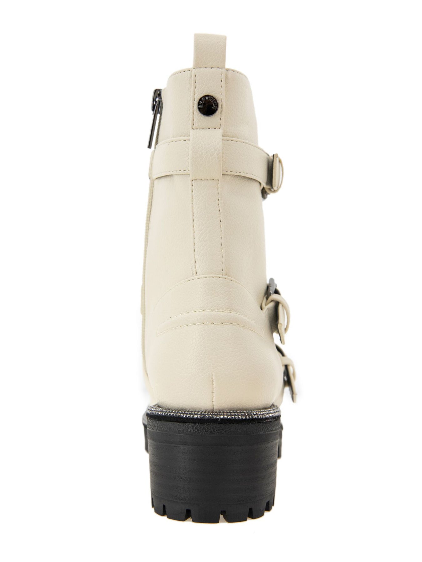 Womens Ivory Buckle Accent Embellished Tate Round Toe Block Heel Zip-Up Moto