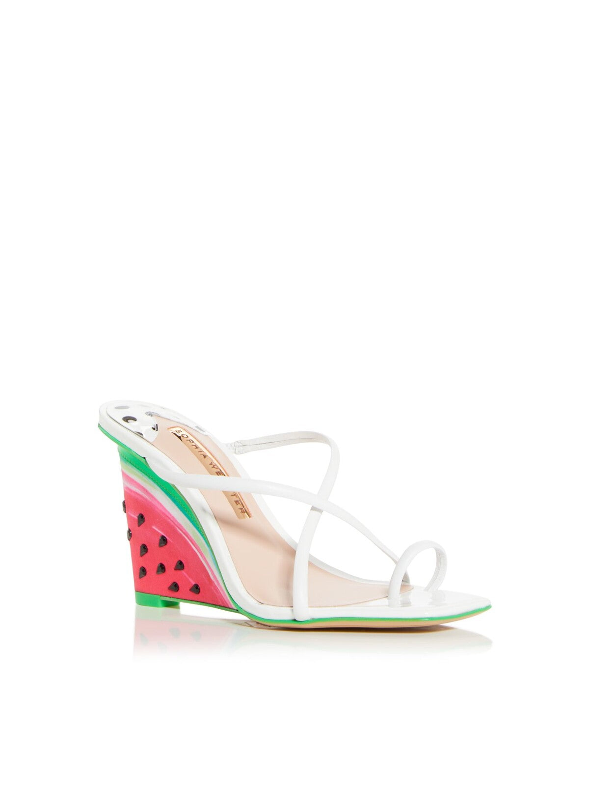 Womens White Watermelon Embellished Brooke Square Toe Wedge Slip On Leather Heeled