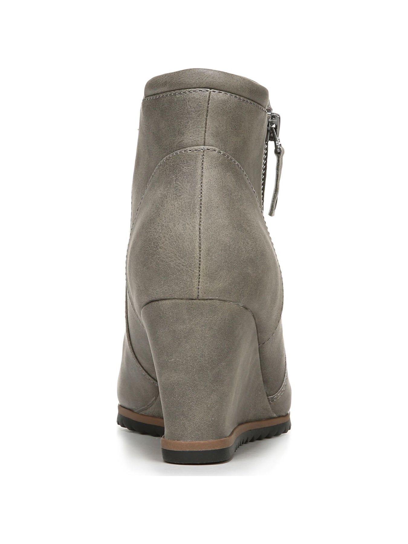 Womens Gray Stretch Gore Arch Support Padded Haley Almond Toe Wedge Zip-Up Booties M