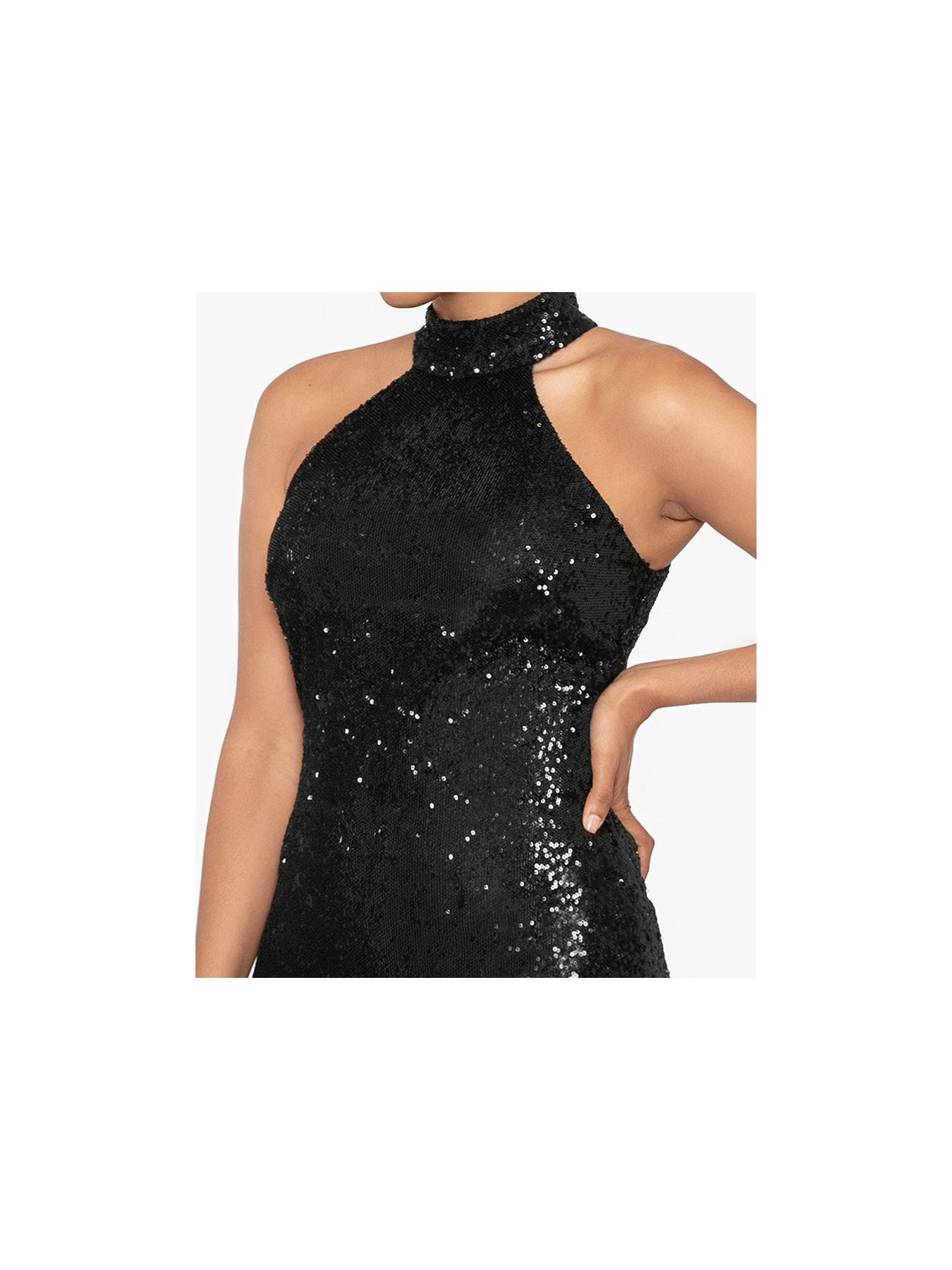 BETSY & ADAM Womens Black Zippered Lined Paillette Sequined Hem Sleeveless Halter Short Cocktail Sheath Dress