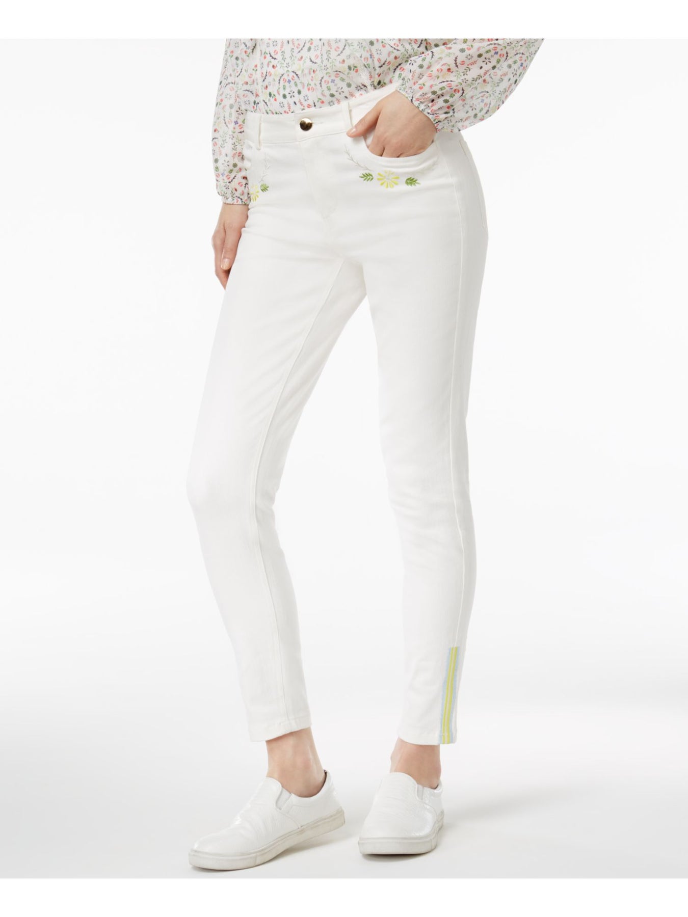 CYNTHIA ROWLEY Womens Embroidered Ankle Skinny Pants