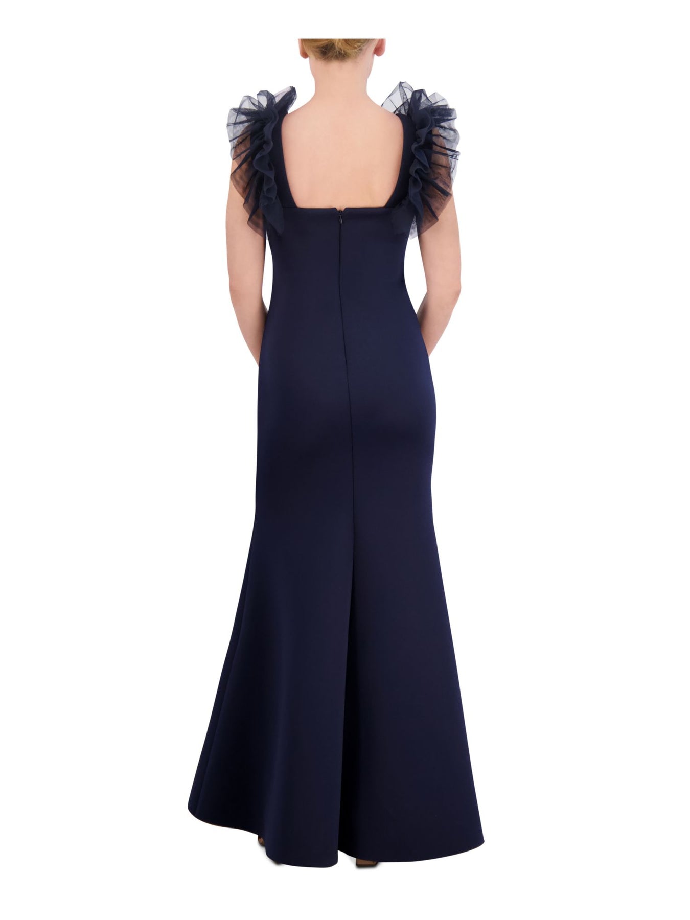 ELIZA J Womens Navy Fitted Zippered Ruffled Tulle Trim Lined Sleeveless V Neck Full-Length Evening Gown Dress 2