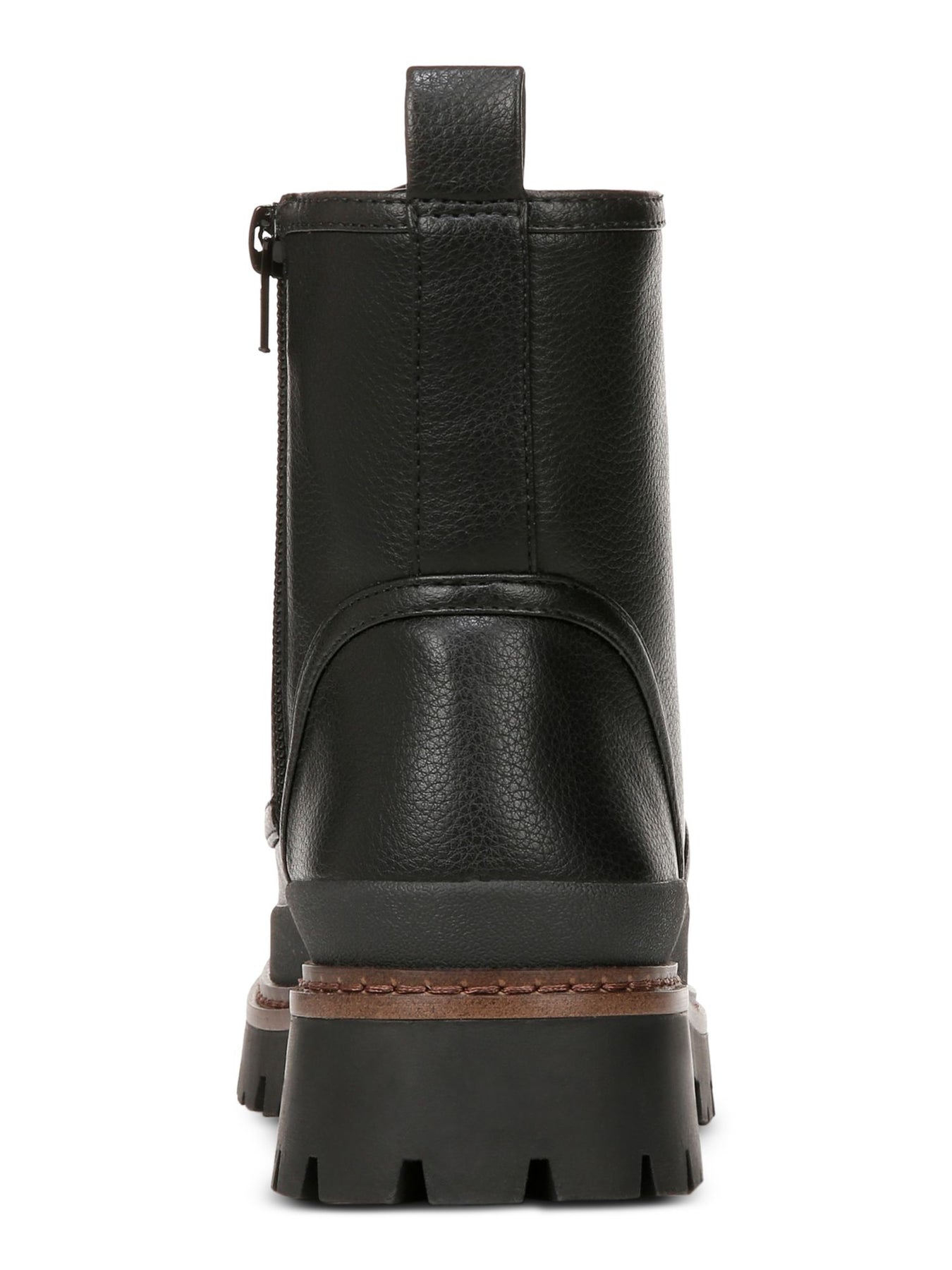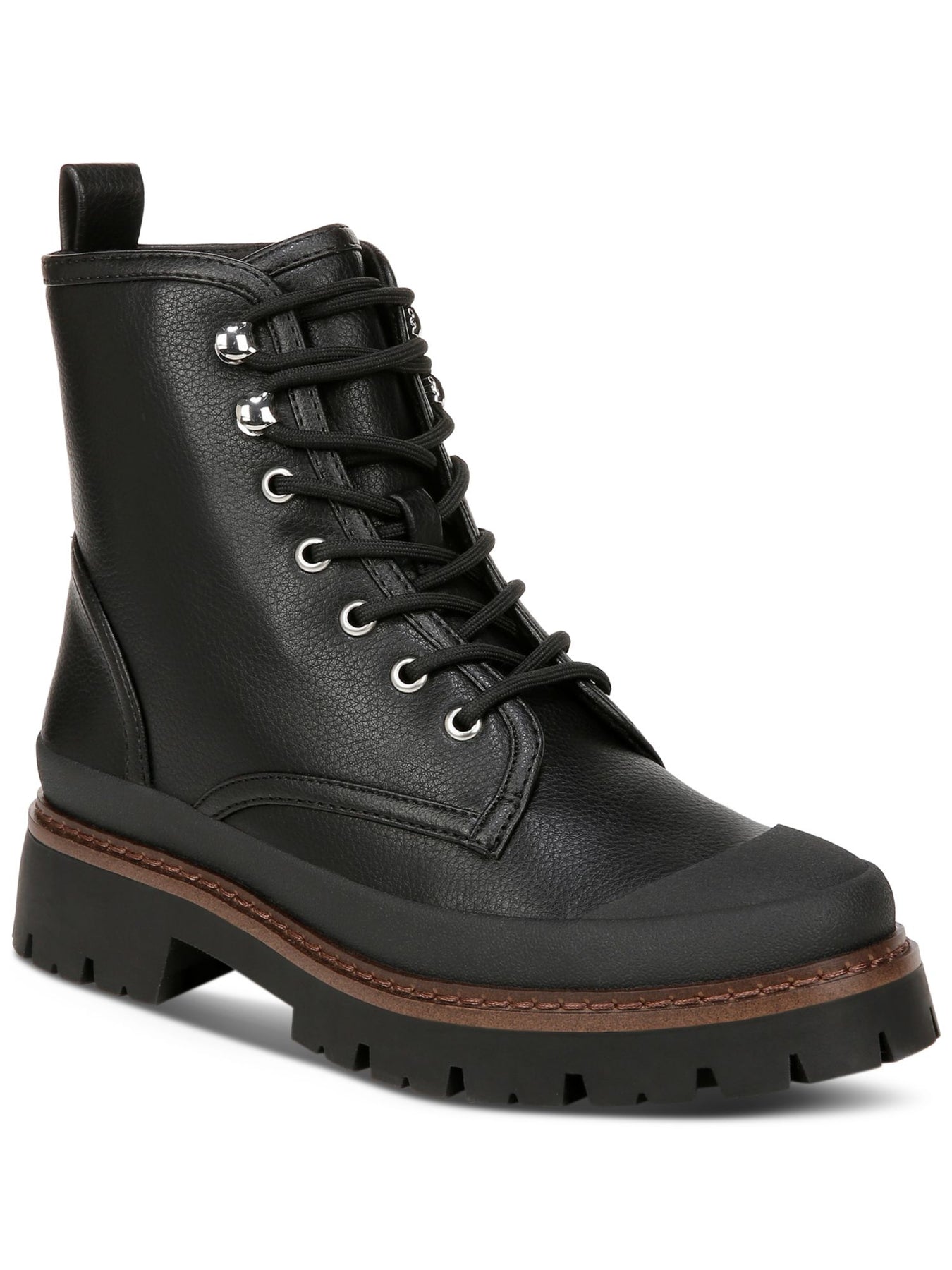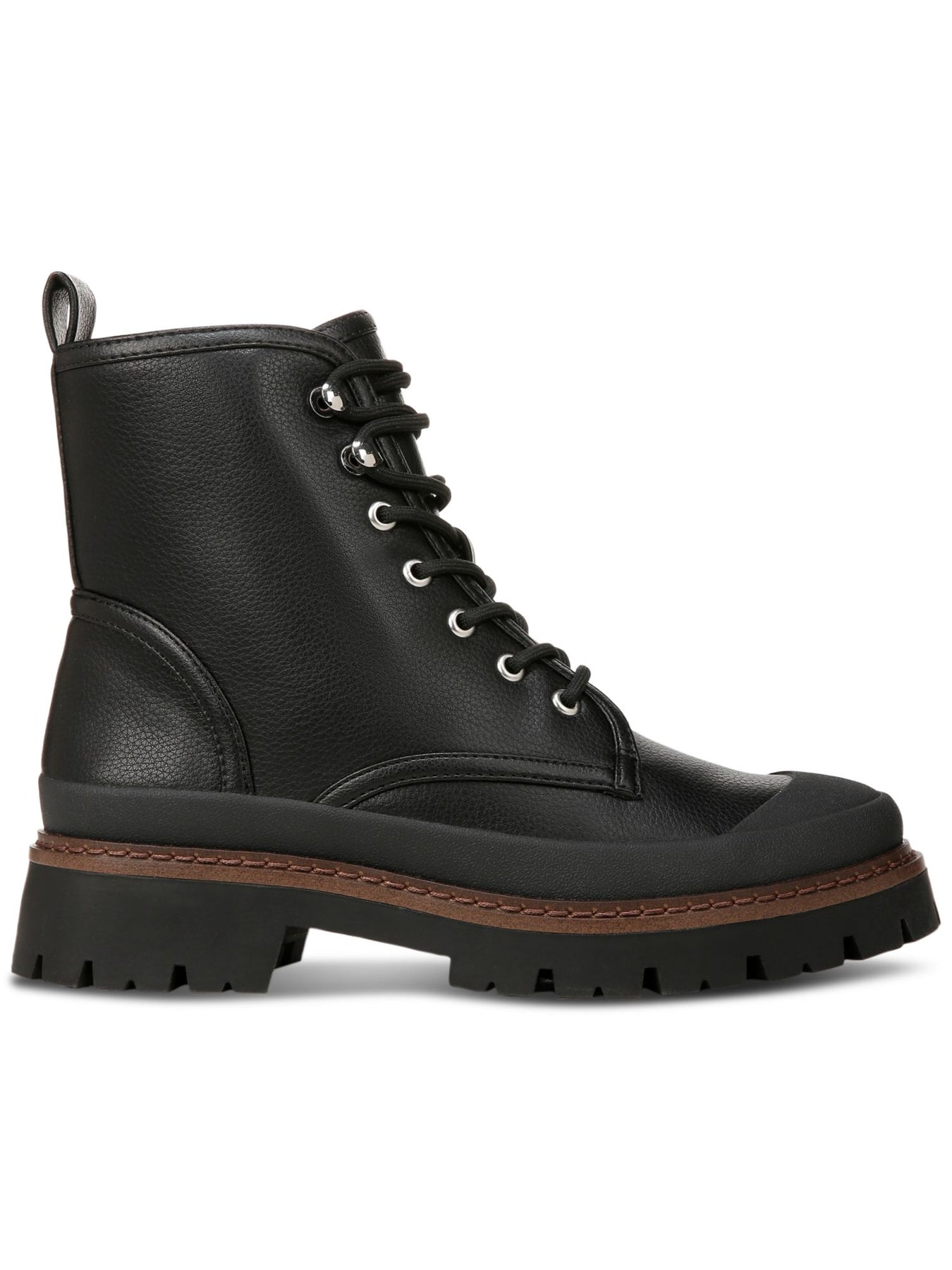 Womens Black Treaded Heel Pull-Tab Lace Up Cushioned Lug Sole Janessaa Cap Toe Zip-Up Leather Combat Boots M